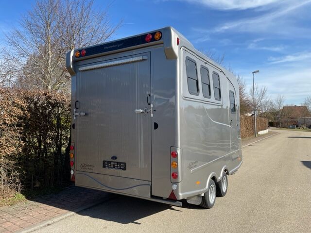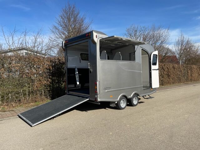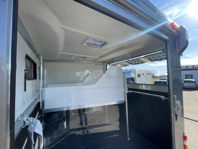 3,5 t masa całkowita 3 miejsca parkingowe dla koni tylna rampa w pełni otwierane okno boczne na głowy koni Hala treningowa z 3 uchwytami na siodła, uchwytami na uzdy, składaną kanapą Drzwi przejściowe z hali treningowej do przedziału dla koni Malowanie Mini topienie srebra Cena na życzenie Papiery celne na eksport mogą być dostarczone za dodatkową opłatą. Zapytania pod numerem 01606106131--00491606106131