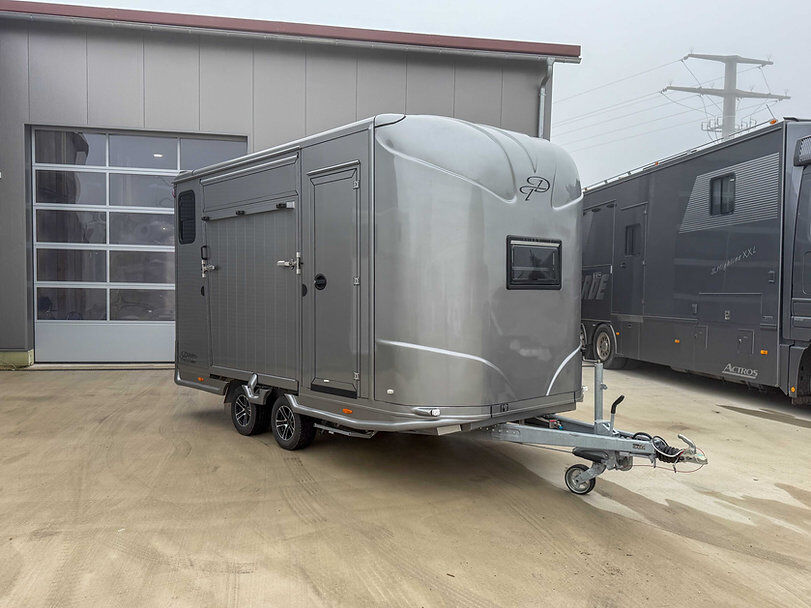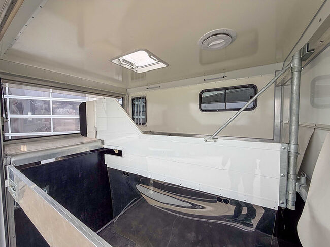 Przyczepa do przewozu koni 2 konie Płaski/osiodłany schowek Transporter do przewozu koni - Wyposażenie: 2 miejsca parkingowe i część dzienna z prysznicem