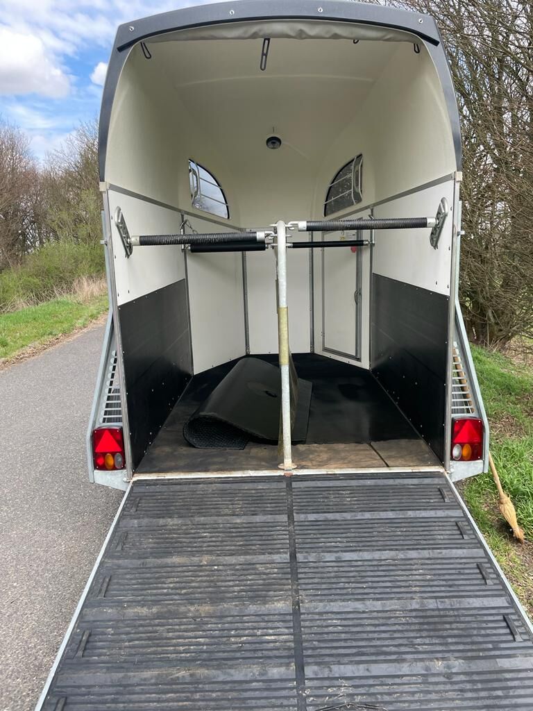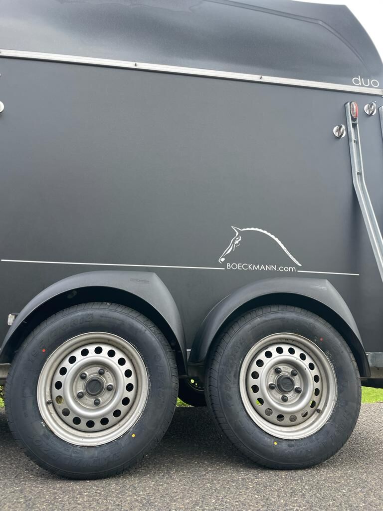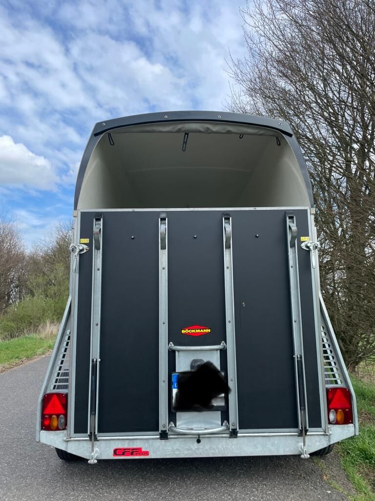 Przyczepa do przewozu koni Böckmann Duo Esprit - Tutaj oferujemy na sprzedaż naszą przyczepę Böckmann Duo Esprit. Przyczepa jest używana, ale w TOP stanie. Zobacz zdjęcia. Dane techniczne Podstawa 2 konie, drewniana podłoga. Waga całkowita 2400kg Ładowność 1591kg Wymiary zewnętrzne długość 4500mm / szerokość 2200mm / wysokość 2730mm Wyposażenie dodatkowe: winda do plandek ze zintegrowaną siatką Klapa załadunkowa z gumą i zintegrowanymi stopniami oraz ogranicznikiem bocznym. Bramki platformy pokryte tworzywem sztucznym. Gumowa podłoga klejona i uszczelniona. Pierwsza rejestracja: 2014 Tüv: Nowy Opony: Nowe W razie jakichkolwiek pytań zapraszam do kontaktu telefonicznego.