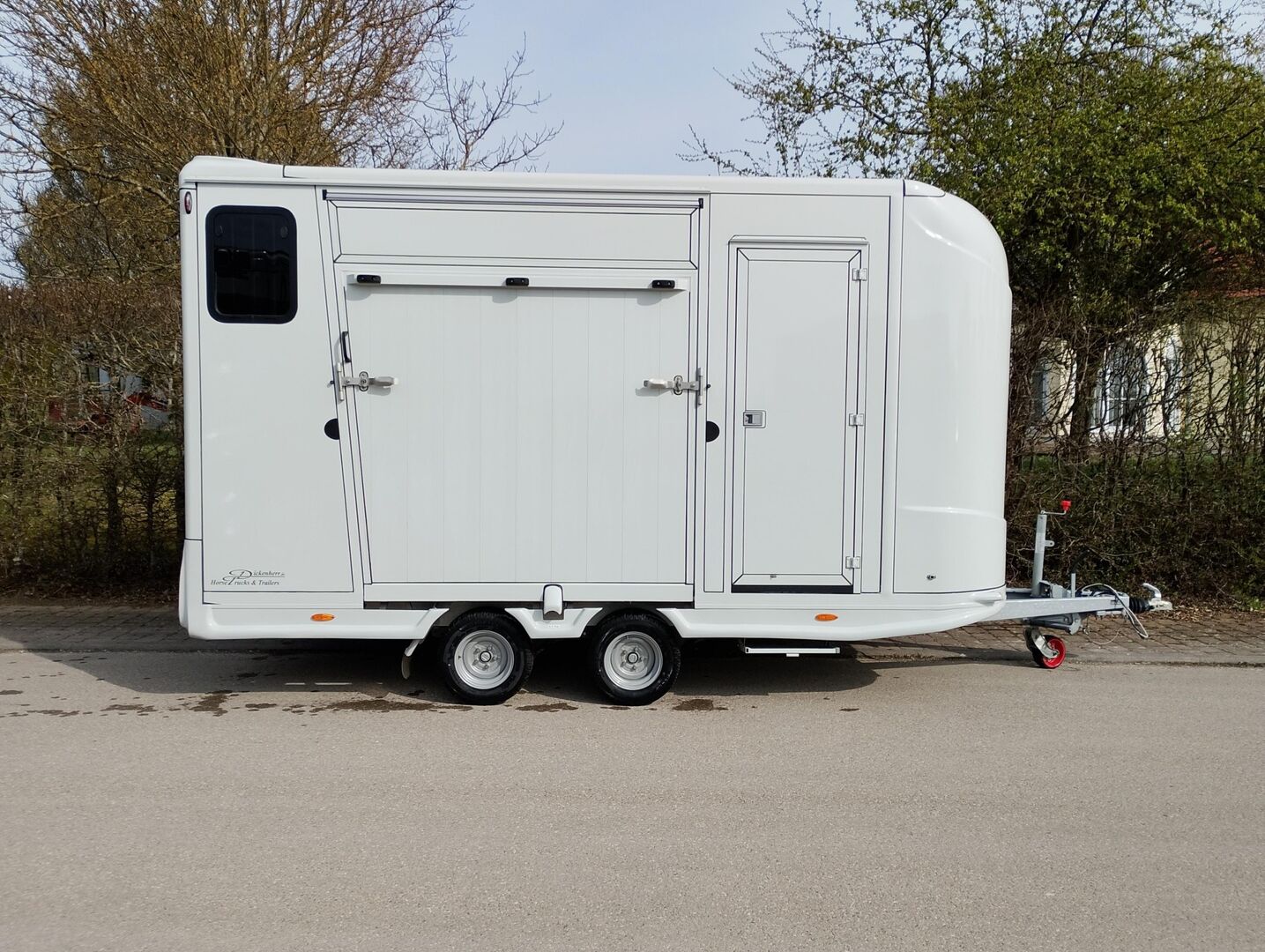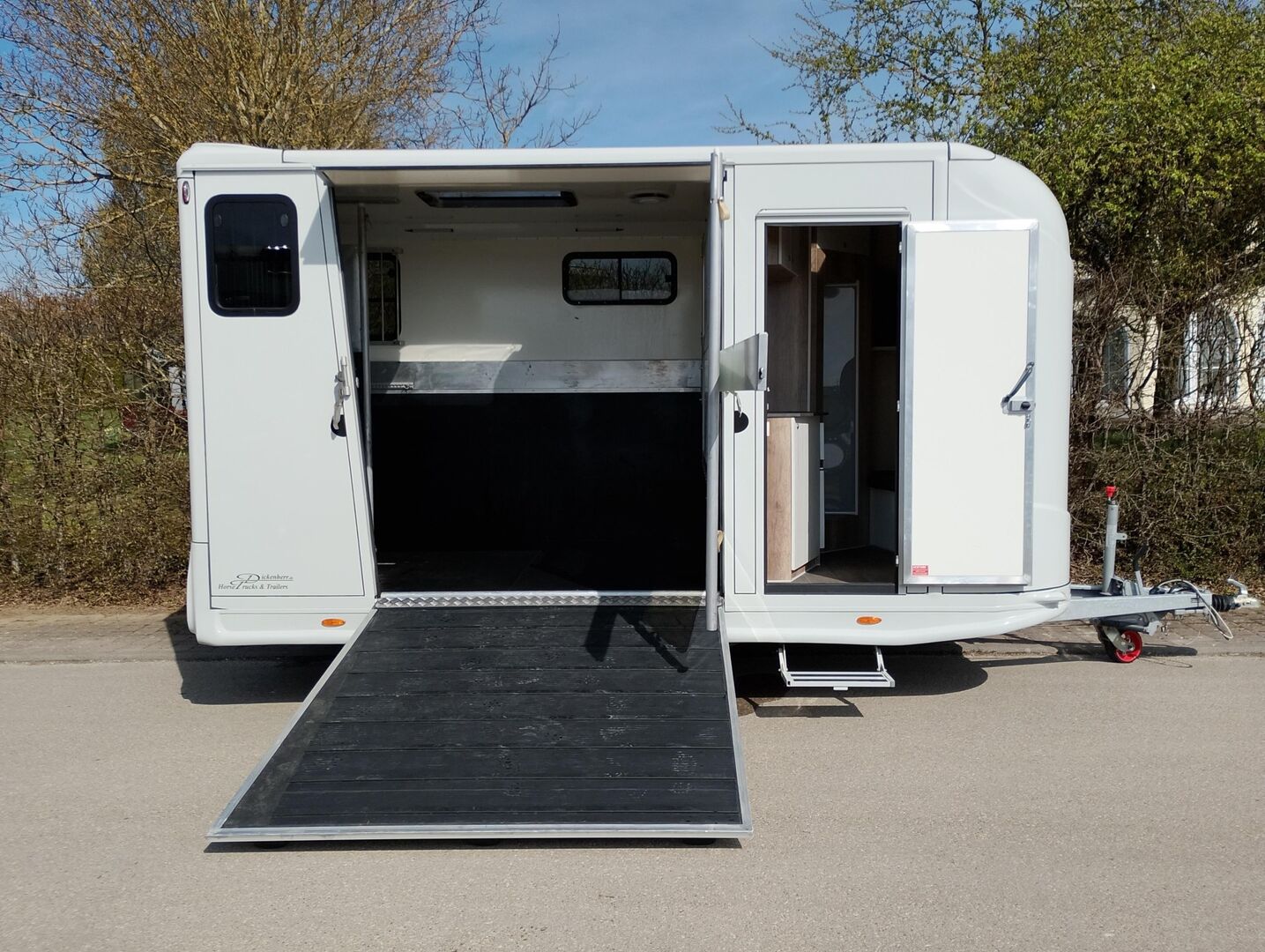 Przyczepa do przewozu koni Przyczepa do przewozu koni DT Przyczepa do przewozu ogierów z płaską podłogą Przyczepa do przewozu koni Paardentrailer - Używana przyczepa do przewozu koni z wyposażeniem dla ogierów i przedziałem mieszkalnym