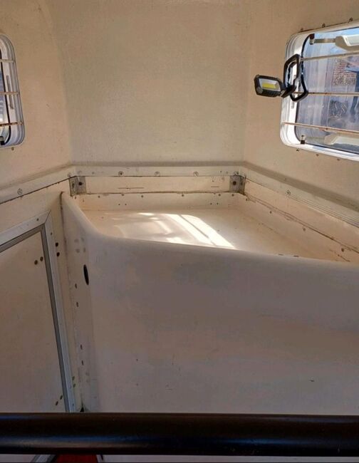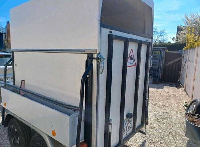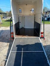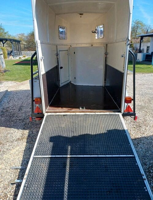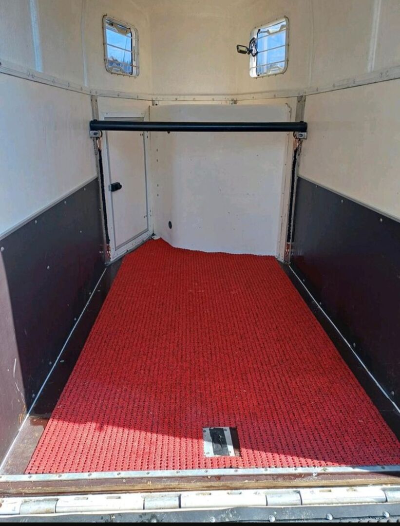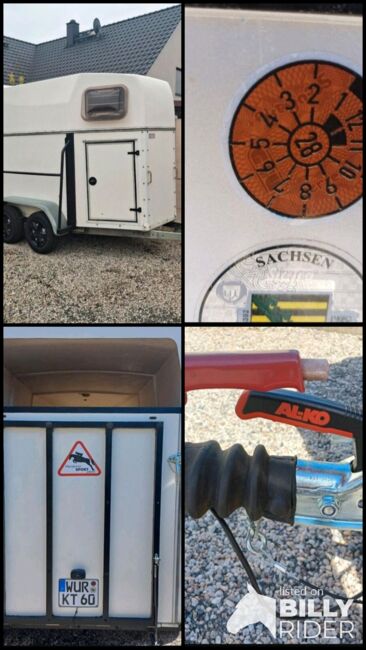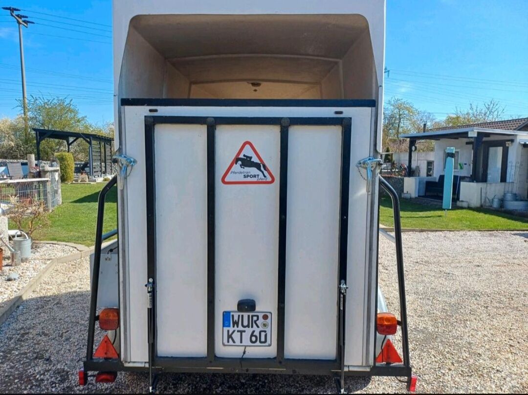 Przyczepa do przewozu koni Rettenmaier 1.5 małe konie - Sprzedaję naszą 1,5 konną przyczepę Rettenmaier z nowym przeglądem technicznym dla małych koni, kucyków itp. ze względu na wzrost liczby koni. Linki hamulcowe, dyszel i cztery opony zostały odnowione w trakcie przeglądu technicznego. Odnowiono również amortyzatory klapy ładunkowej, przyczepa ma bardzo niską masę własną i można nią łatwo manewrować ręcznie. Bardziej szczegółowe dane Zdjęcie homologacyjne. Przegroda środkowa dostępna, ale niezamontowana. Tack room, wyjście boczne, koryto paszowe, nowa powierzchnia antypoślizgowa, boczny schowek na łopatę itp. W razie pytań prosimy o kontakt.