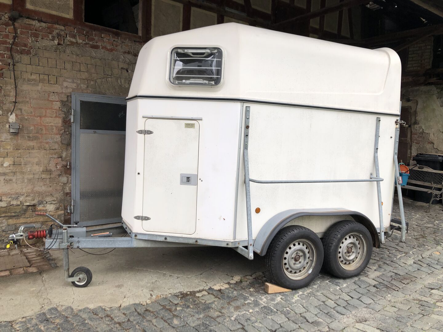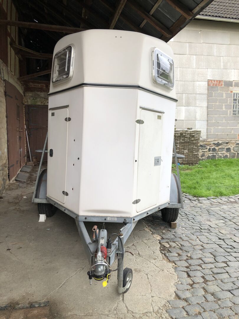 Przyczepa do przewozu koni Steinsberger full poly - Przyczepa do przewozu koni Steinsberger, pełna poli dla 2 koni. Pomieszczenie i koryta. MOT nowy, następny MOT to 10/2025. Oświetlenie i okablowanie zostały wykonane. Podłoga i jedna ściana boczna również zostały odnowione, ale przed naszym zakupem w 2017 roku. użyliśmy go tylko 3 razy. Dlatego zdecydowaliśmy się sprzedać przyczepę. Przyczepa jest wyrejestrowana, miała zieloną tablicę rejestracyjną. Wysokość 2720, szerokość 2100, długość 5100, dopuszczalna masa całkowita 2000 kg, rok budowy 05/06/1996, masa własna 790 kg. Zawsze była zadaszona i stała pod dachem.