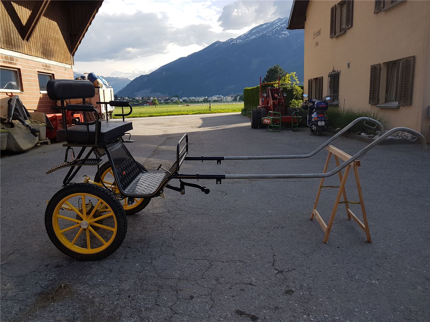 Przygotowany koncert - Typ Gig, z hydraulicznymi hamulcami tarczowymi, regulowanym siedzeniem, uchwytem na bat po prawej stronie i pasującym lantenem. Wielkość powozu jest idealna dla małych koni, do tej pory był on ciągnięty przez haflingera.