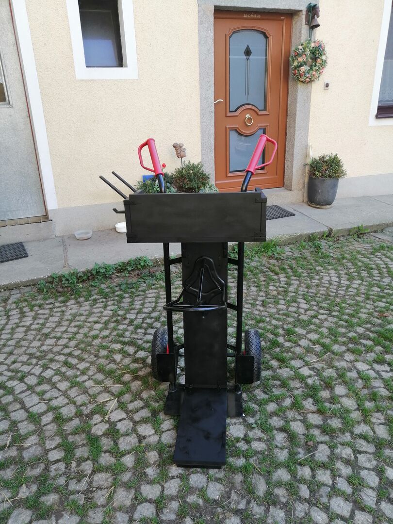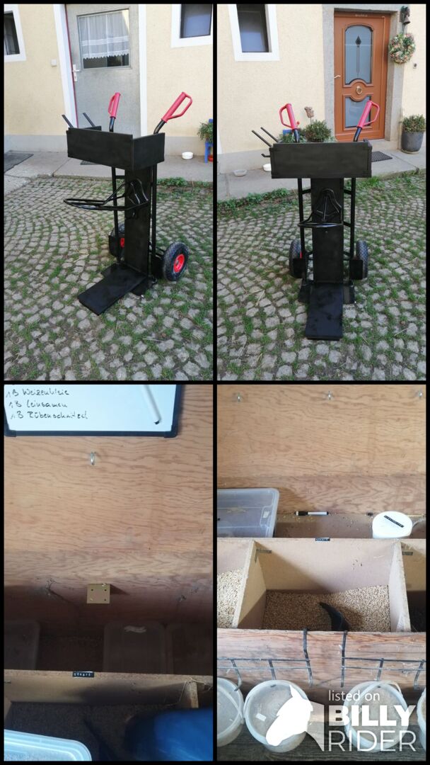 Pudełko na żywność i tłuczek do sartelcaddy - Duży pojemnik na żywność o długości 122 cm, głębokości 65 cm i wysokości 70 cm Miejsce na żywność 3x30 kg, półka na dodatkową żywność i miejsce do przechowywania pod spodem Cena 150€