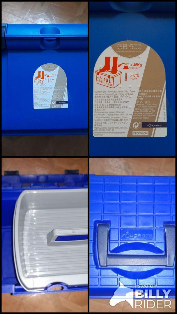Pudełko jest używane, ale jest w doskonałym stanie. Ma pojemność około 16 litrów i maksymalne obciążenie 45 kg.