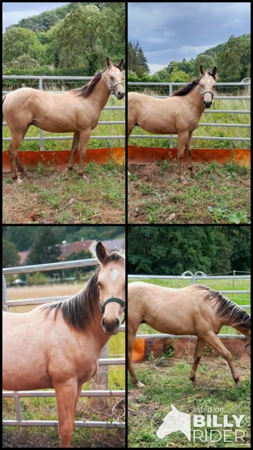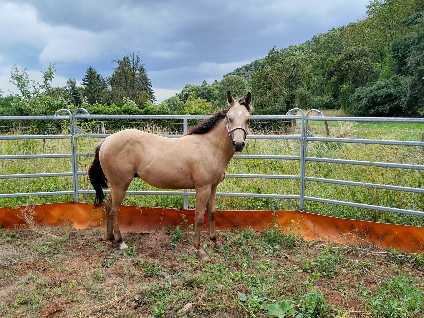 Quarter Horse Gelding - Piękny wałach o imieniu "Woody" szuka miłego domu. Woody urodził się 04 czerwca 2023 roku i dorasta w stadzie. Do tej pory jest zaznajomiony ze źrebięcym ABC: trenowany na halterze, spokojnie stoi na uwiązie, bez problemu daje kopyta Charakter: otwarty, czuły, ciekawski, kochany O obojgu rodzicach 5 panel n/n. Ojciec: WB Olenas TOON Matka: Lilgrace Didit Right (Pan: Lilpeppy Dunit Right) Matkę (buckskin) widać na przedostatnim zdjęciu, a ojca (palomino) na ostatnim. Woody posiada pełne papiery DQHA/AQHA