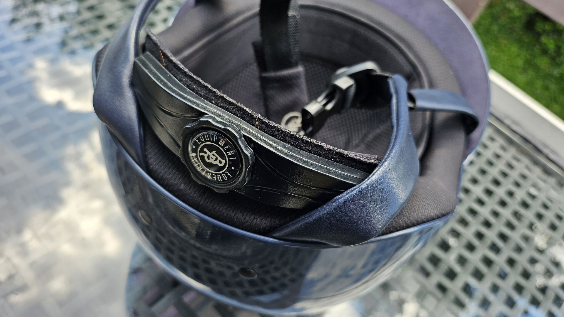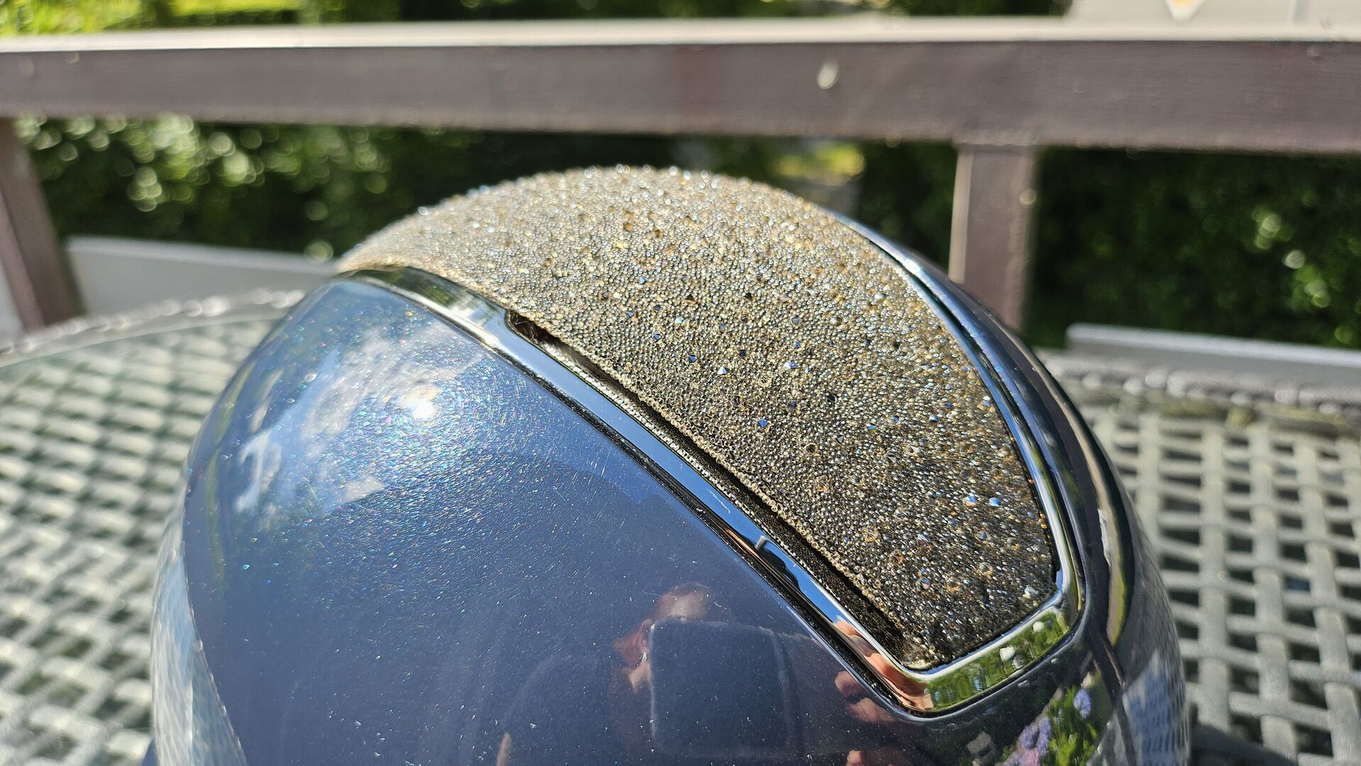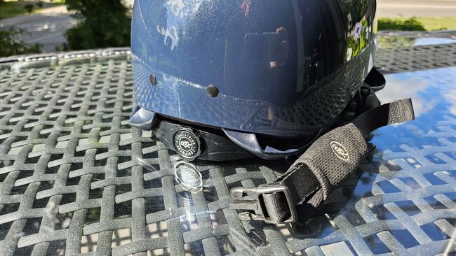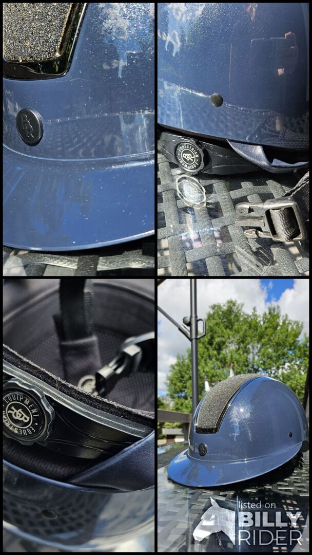 RB Kask jeździecki Omega Glamorous Glossy 52-54 - Rzadko używany kask jeździecki RB na sprzedaż, rozmiar 52-54, niebieski patent z brokatem. Bez zderzenia Nowa cena wynosiła 230€