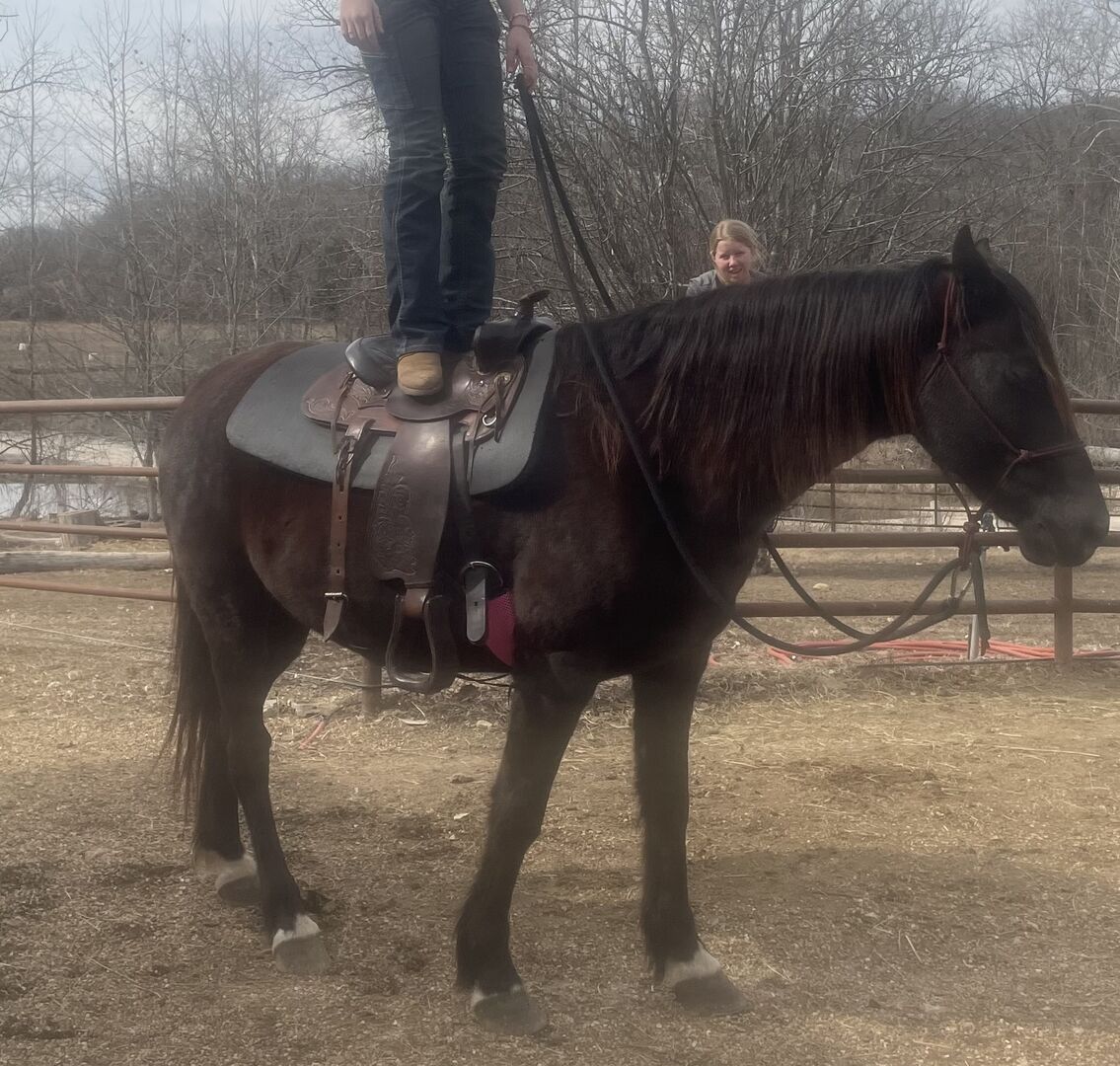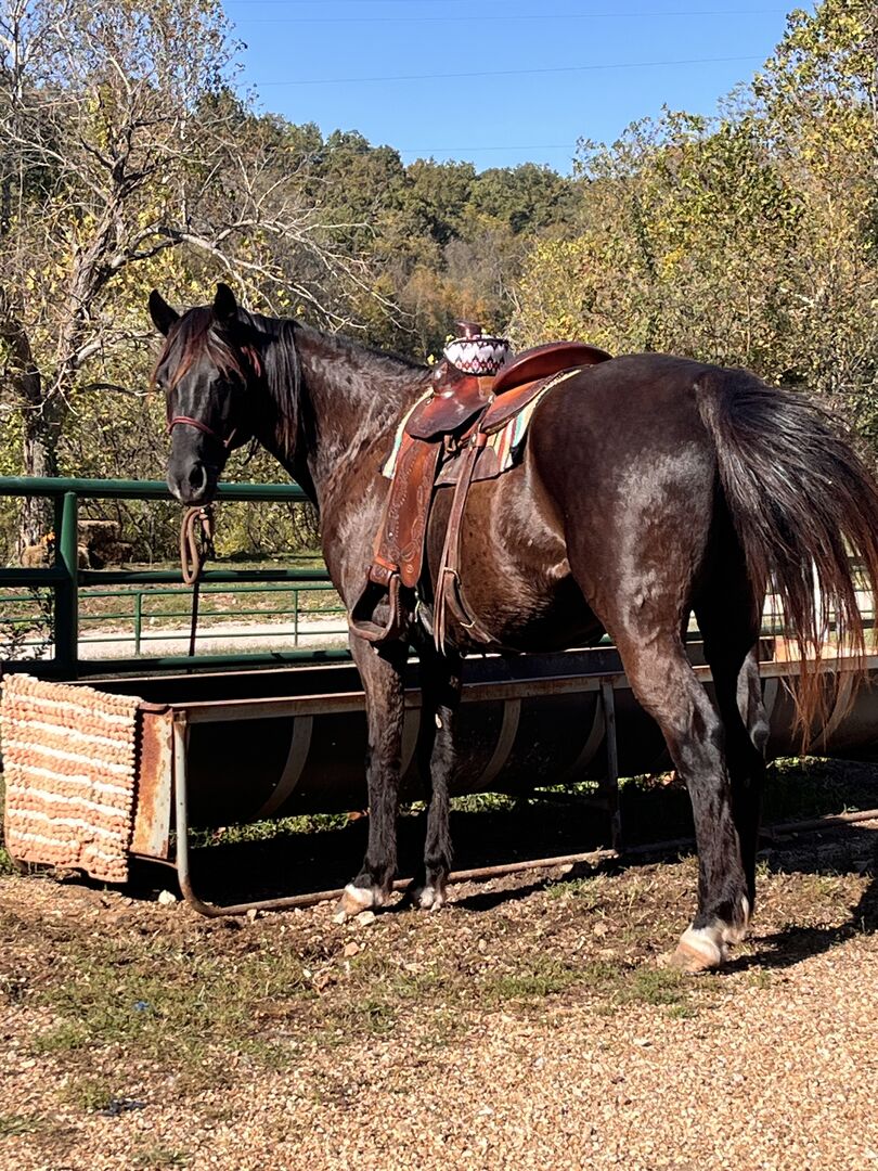 Rebel is a very special horse. Loves people and trails. I’ve done it all off of him. He’s 8 years old. 4 white half socks, and small star. No issues. Easy to catch, saddle, ride, change gaits. I’ve swung ropes and ponied off of him. Great kid or adult horse. Neck reins. He’s 1/4 Appaloosa and 3/4 Rocky Mountain horse