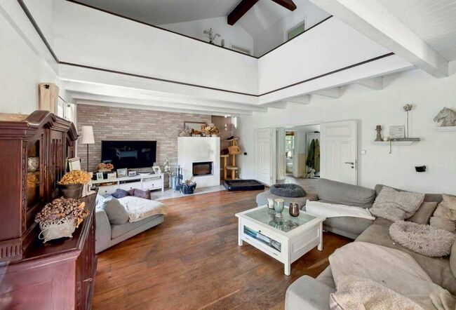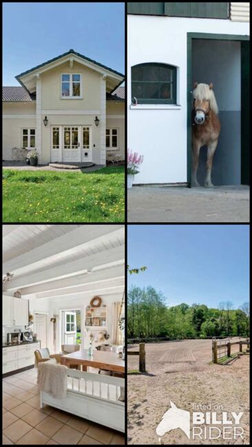 Ref2554 Schleswig Holstein, Landkreis Plön, Giekau - Willa ze stadniną koni na sprzedaż! - Elegancka prywatna posiadłość na sprzedaż w spokojnej okolicy dla miłośników koni! Działka o powierzchni 21 556 m2 około 192 m2 plus 45 m2 rezerwy na rozbudowę na piętrze, pozwolenie na budowę mieszkania babci na piętrze jest dostępne, salon 40 m2, duża elegancka kuchnia wiejska, 2 biura, duża główna sypialnia, łazienka z okrągłą wanną Basen ze słoną wodą z tarasem i zadaszonym miejscem do grillowania, sauna z prysznicem i pokojem relaksacyjnym Budynek stajni o powierzchni 240 m2, pomieszczenie na siodło, magazyn paszy, boks solankowy do inhalacji, warsztat o powierzchni 480 m2, ok. 1 100 m2 padok / arena jeździecka Staw z biotopem, pastwiska, tereny leśne, otwarta stajnia dla maksymalnie 8 koni, padok zimowy