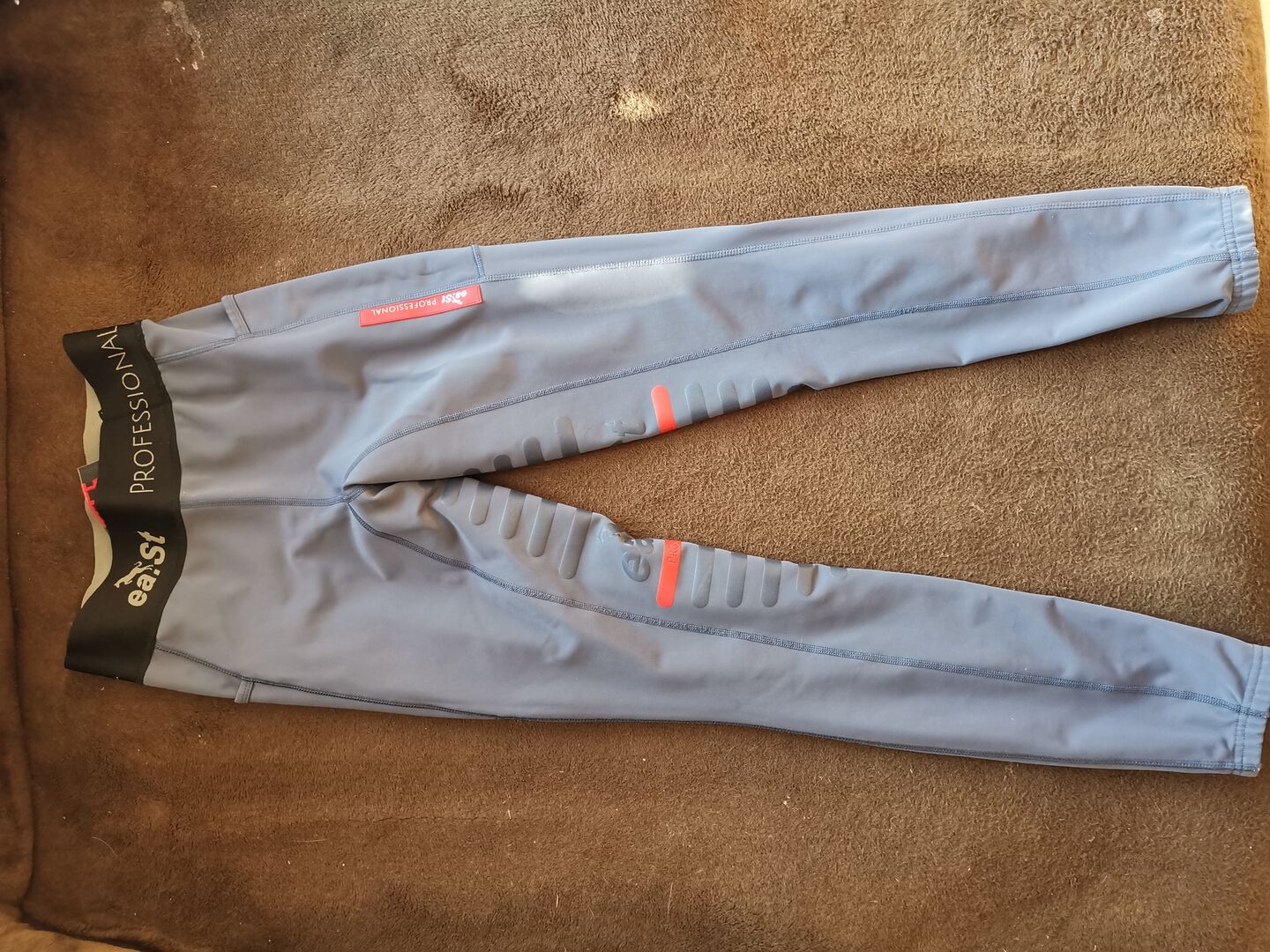 Verkaufe taubenblaue Winterreggings in Größe S.