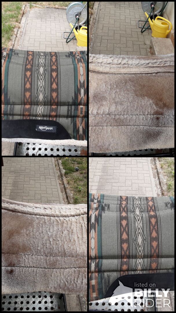 - Skórzane wykończenie w kłębie i w okolicy pasa.