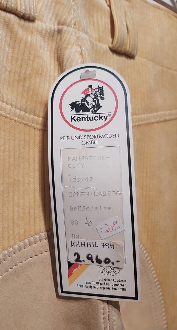 Na sprzedaż ciepłe zimowe bryczesy z Kentucky ze sztruksu z siedziskiem ze skóry rozmiar 40 w kolorze żółtym, 2 kieszenie; Sprzedaż prywatna: bez gwarancji, rękojmi i zwrotu;