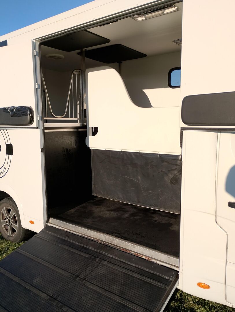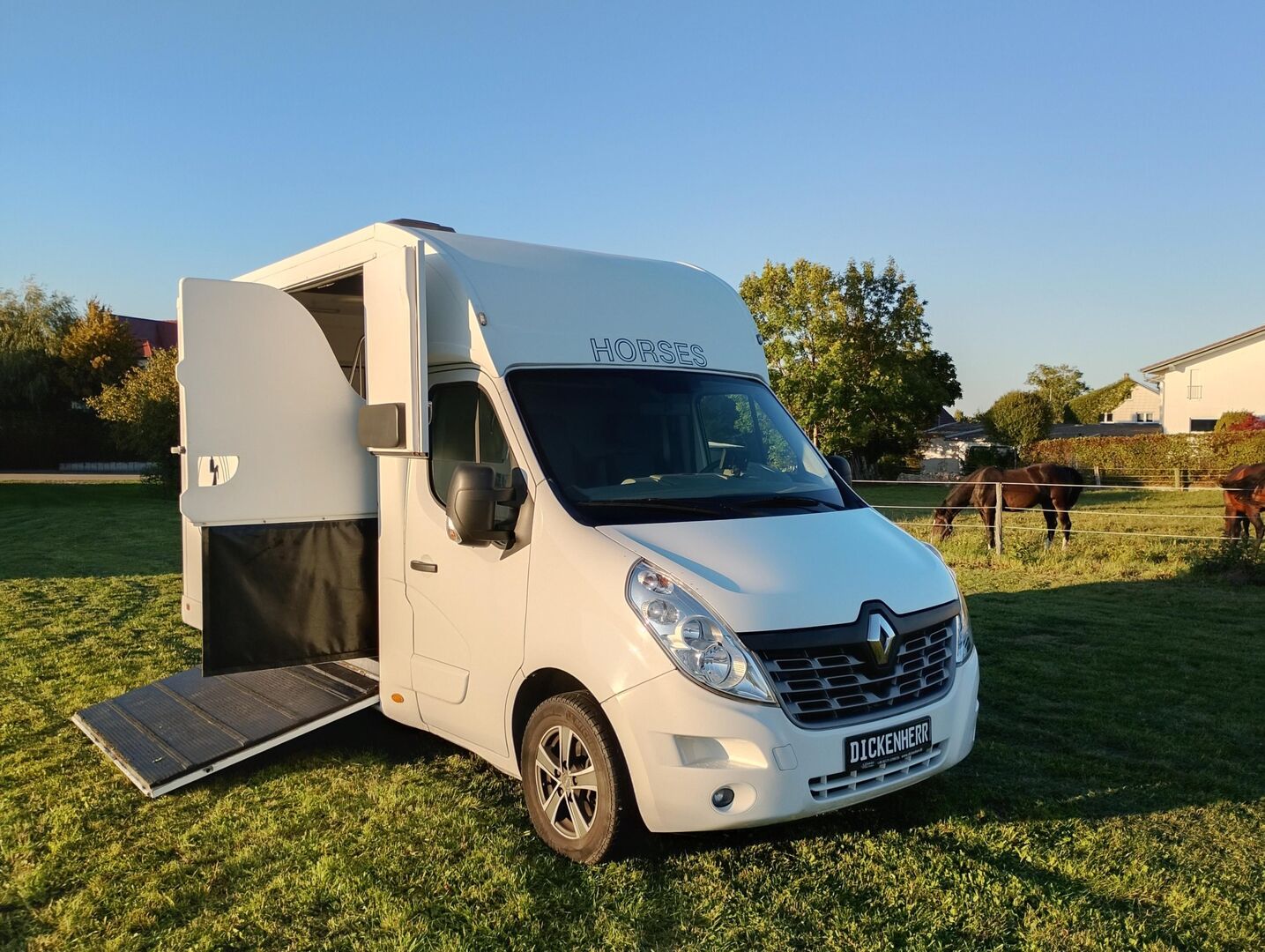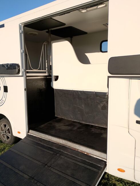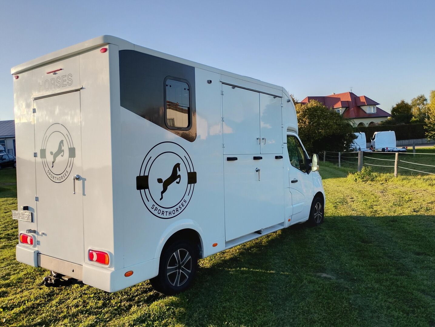 Renault Master do przewozu koni Nuyts - Renault Master horsebox Nadwozie marki od firmy Nuyts Pierwsza rejestracja 2015 Nowy Manualna skrzynia biegów Silnik Euro 5 80 000 kilometrów 165 KM Tempomat Klimatyzacja 3 miejsca Radio z zestawem głośnomówiącym Sprzęg przyczepy o ładowności 2,5 tony Monitoring w przedziale dla koni i kamera cofania Schowek w spojlerze dachowym Rampa boczna z 2 klapami powyżej 2 miejsca dla koni Ruchoma ścianka działowa Poduszka pod głowę na suficie Wentylator Duży pokój dla koni Tylne drzwi do pomieszczenia dla koni Tapicerka na bocznej klapie jest odnowiona Dostępny od zaraz Oglądanie możliwe tylko po wcześniejszym umówieniu Cena netto 39.000EUR plus 19%VAT Cena brutto 46.410EUR Dostępny od ręki Oglądanie możliwe tylko po wcześniejszym umówieniu Zapytania na 01606106131-00491606106131