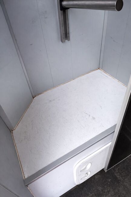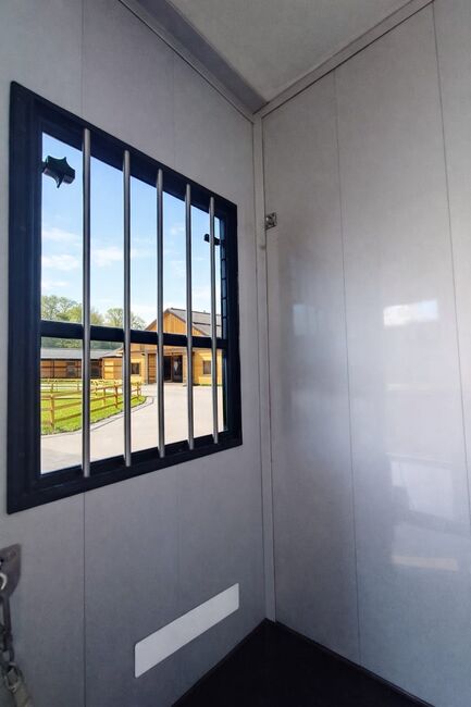 W części przeznaczonej dla koni zastosowano skórzaną tapicerkę w kolorze konia. Są one w dobrym stanie i wykazują jedynie niewielkie oznaki zużycia.