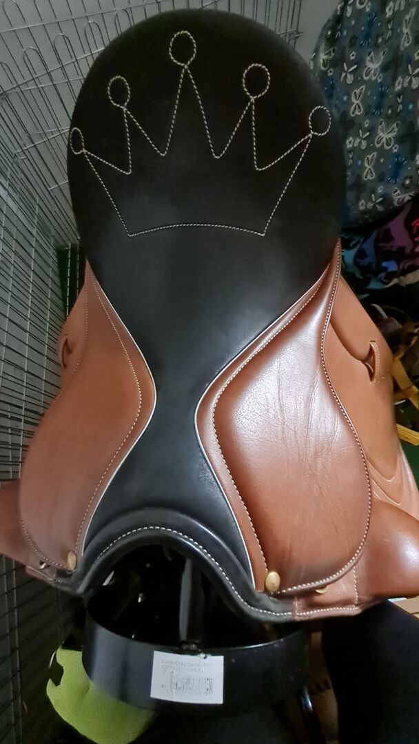Reserved - Che Saddle Garrocha - Ledwo używane siodło ujeżdżeniowe Che model Garrocha w trzech kolorach: czarny, ciemny brąz, naturalny. Producent: Classical Horse Equipment rozmiar: 17,5" Stan: jak nowe Zostanie dostarczone z oryginalnym pokrowcem ochronnym.