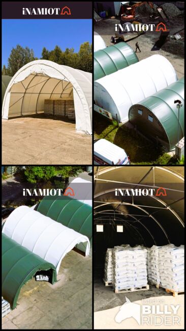 Vorteile auf einen Blick: starke PVC-Plane 900 g/m², UV-Schutz 50+, hohe Reißfestigkeit, stabile verzinkte Stahlkonstruktion, gebogene Dachform für besseren Ablauf von Regen und Schnee, zwei große Eingangstore, schnelle Montage, mobil und flexibel einsetzbar, ideal für Heu, Stroh, Futtermittel, Maschinen, Geräte und Lagerwaren.