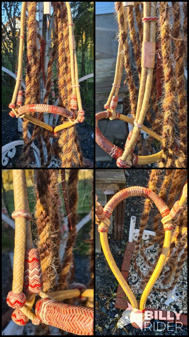 Rohaut Bosal z Mecate - Bardzo piękny bosal Rohaut w idealnym stanie (2 razy na koniu). Zdobienia w kolorze białego bordo. Płynna regulacja nachrapnika. 5/8 przy paskach 3/4 przy nosie....11 rozmiar w calach....Kompletny jak na zdjęciach na sprzedaż z powodu rezygnacji z jazdy.