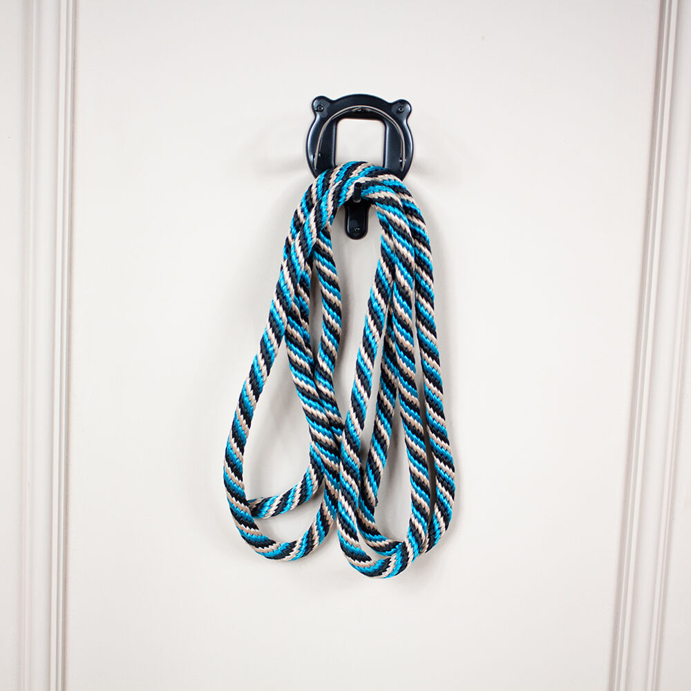 Rope Blue/Turquoise/Beige - Lina ta może być stosowana w wielu dziedzinach. Może być używana jako linka wiodąca bez haka panicznego lub karabinka do szybkiego wyprowadzenia konia na łąkę, jako zamiennik pierścienia szyjnego lub jako alternatywny bat do lonżowania. Jest niebieska, turkusowa i beżowa, a jej długość wynosi 3,25 m. Ma średnicę około 1,7 cm. Lina jest tak dobra jak nowa. To the seller's offerlaunch