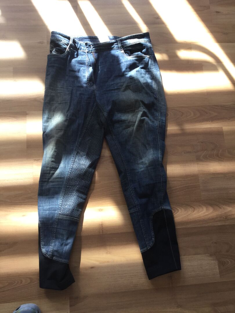 Równowaga Reithosena - Sprzedaję 2 rzadko noszone bryczesy. Obie marki Equilibre. Jedna z nich ma wygląd dżinsowy i pełny uchwyt, druga jest czerwona z czarnym uchwytem.