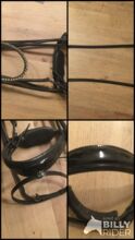 Royal H Snaffle - Piękny snaffle Royal H z połączonym noskiem, jak również z han. Noseband na sprzedaż. Dobrze utrzymany, używany był używany tylko dla jednego konia. Oba paski nosowe czarne / lakierowane, podszyte i dobrze wyściełane. Snaffle z obiema opaskami na nos 270,00 € Snaffle z jednym paskiem na nos 230,00 € pojedynczy pasek na nos 60€ za sztukę