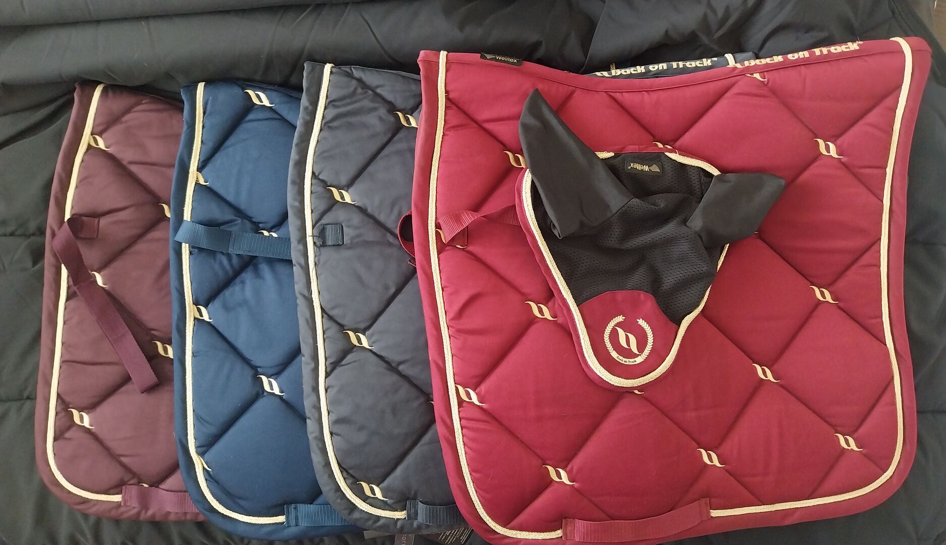 Niestety podkładki ujeżdżeniowe nie pasują już pod moje nowe siodło. Niebieska podkładka pod siodło 2 jest nowa W 3 brakuje pętli na siodło