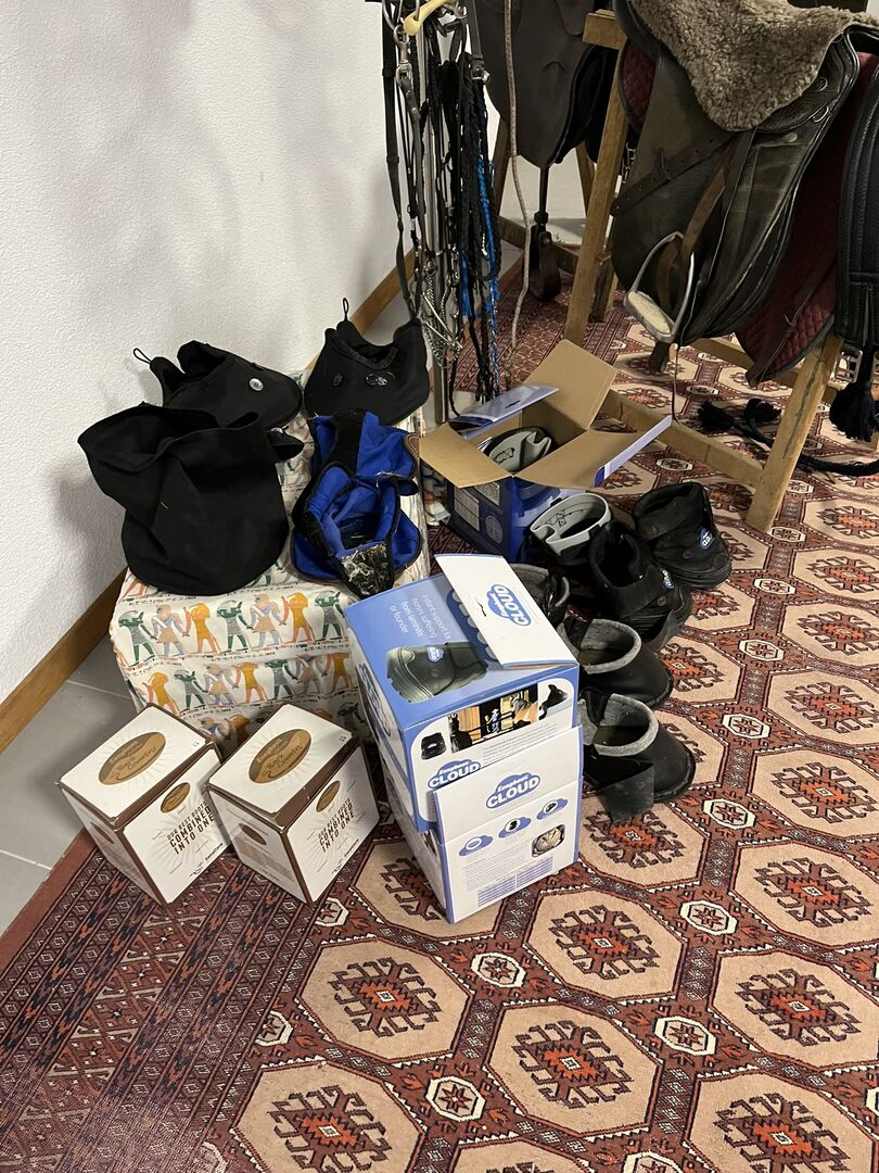 Różnorodne części zamienne do sprzedaży - Siodła w dobrym stanie skokowe/jeździeckie, siodło Prestige, różne derki 125,135,145, inne artykuły do sportów jeździeckich. Cena od 2 do 300 Fr.