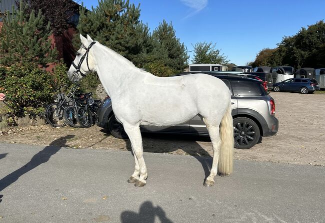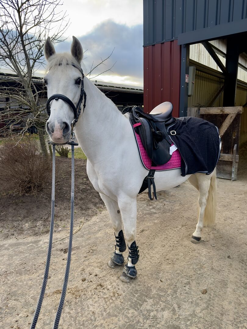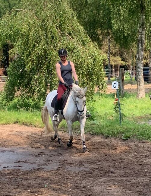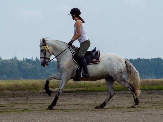 Jest również wrażliwa podczas jazdy i ma dużo ruchu. Często szybko się rozgrzewa i potrzebuje konsekwentnego, spokojnego jeźdźca, w przeciwnym razie szybko się zestresuje. Podczas codziennej pracy powinna być zawsze zajęta. Jeśli zrobisz to samo 2-3 razy, szybko przejmie twoje decyzje. Dlatego chciałbym znaleźć kogoś, kto najlepiej ma już doświadczenie z hiszpańskimi końmi. Ze względu na ograniczenia czasowe nie jeździłam z nią jeszcze zbyt wiele. Zwykle dużo przebywałam poza domem. Albo pracowałam z nią z ziemi.