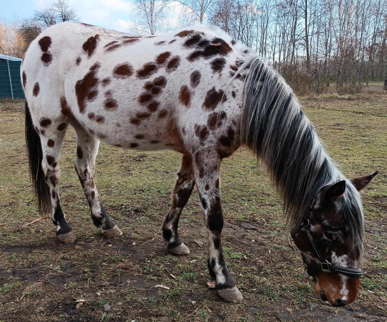Rzadki mały koń w specjalnym malowaniu - Nasz Apollo, pieszczotliwie nazywany przez nas Pötty, niestety szuka nowego domu, ponieważ nie jest akceptowany w naszym stadzie. Ma około 145 cm wzrostu i chodzi na bosaka. Pötty świetnie prezentuje się również przed powozem! Ma teraz 5 lat i właśnie został zajeżdżony. Bez problemu opanował 3 podstawowe chody pod jeźdźcem. Pötty jest niezwykle słodkim i towarzyskim małym koniem. Jest łatwy do kucia i załadunku. Niegrzeczności takie jak gryzienie i bicie są mu obce! Pötty'ego można obejrzeć w każdej chwili w pobliżu Nickelsdorf! Jeśli jesteś zainteresowany lub masz dodatkowe pytania, po prostu napisz PN :-)