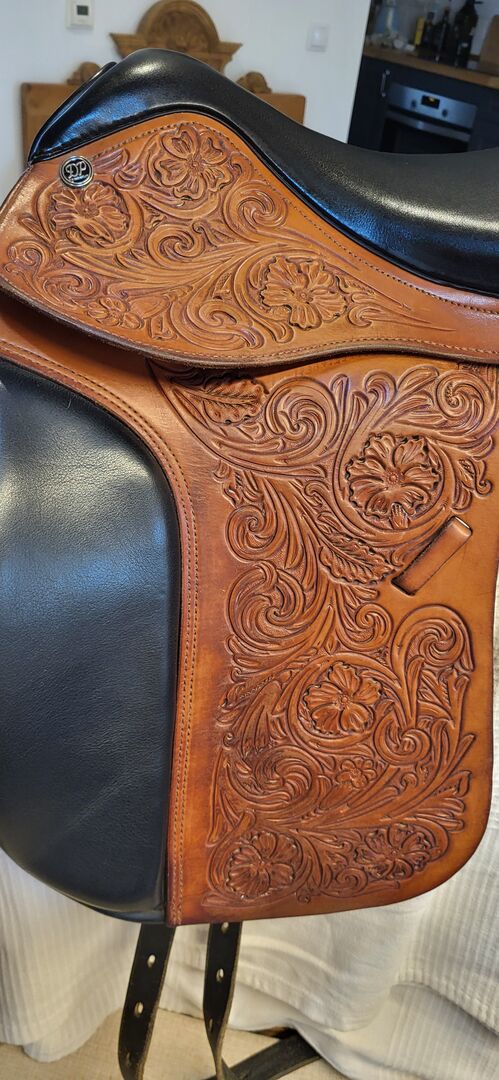 Rzadkość: Piękne siodło Maxima Flora by Deuber - Sprzedaję moje piękne siodło Maxima Flora od Deuber & Partner. Siodło jest naprawdę niezwykłe dzięki kwiatowemu dziurkowaniu skóry i bardzo rzadkie. Naprawdę przyciąga wzrok. Od razu zakochałam się w tym siodle. Nie tylko dlatego, że jest tak piękne, ale także dlatego, że jest bardzo wszechstronne dzięki wielu innowacyjnym funkcjom. Stelaż siodła jest elastyczny, a szerokość komory można indywidualnie regulować za pomocą klucza imbusowego. W zestawie znajduje się oryginalny klucz imbusowy. Siodło jest bardzo lekkie (ok. 7 kg), a powierzchnia styku paneli siodła z grzbietem konia jest bardzo krótka, z lekkim zakrzywieniem. Idealne na przykład dla koni iberyjskich. Siodło ma 2 klapy, ale może być również używane jako klapa pojedyncza. Klapę przeciwpotną można zdjąć, odkręcając śrubę. Używałem go jako siodła ujeżdżeniowego. Ale położenie klapy siodła można również przesunąć do przodu, aby siodło miało bardziej eventowy kształt. Paski do popręgu są długie i zostały wymienione kilka lat temu. Są w dobrym stanie. Można je łatwo wymienić (patrz zdjęcie). Jest też dodatkowe oczko na pasek do popręgu, ale nigdy go nie używałam. Strzemiona (brak w zestawie) można umieścić nad lub pod klapą siodła. To drugie jest zalecane, aby nie zużywać skórzanych oznaczeń. Rozmiar siedziska to S2 = średni ok. 17 - 17,5 cala Wyściółka siodła jest miękka. Zawsze używałam siodła z derką jagnięcą. Sprzedaję z nim pokrowiec na siodło od Deubera. Klapa siodła jest dostępna Siodło było używane tylko trochę i jest w bardzo dobrym stanie. Nie używałem go w ogóle w ciągu ostatnich kilku lat, ponieważ mój koń ma teraz 26 lat i już go nie jeżdżę. Ale jakoś nigdy nie chciałam się z nim rozstać. Ale nie ma nic lepszego po prostu leżąc i może znajdę tutaj kogoś, kto będzie zachwycony tym pięknym kawałkiem. To jest sprzedaż prywatna. Nie oferuję żadnej gwarancji ani rękojmi, a wymiana jest wykluczona.