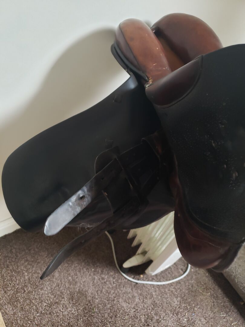 1 Sabre GP saddle, 17.5 inch ,medium fit, dark Havana. Well used but comfortable English leather saddle,, in good condition.