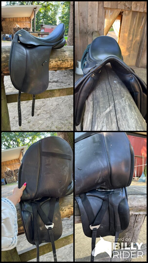 Saddle J. C. - Oferuję dobrze utrzymane siodło ujeżdżeniowe J.C. z komorą 33 i siedziskiem 17. Siodło jest w dobrym stanie i zawsze było przechowywane w suchym miejscu. Przejęłam je od znajomej, która zamówiła je bezpośrednio z fabryki i miała dopasowane przez sprzedawcę na miejscu. Niestety jej koń już nie żyje, więc przejęłam siodło w nadziei, że będzie nam służyło. Niestety, moja klacz nie nadaje się już do jazdy (mieszanka Haffi-Deitsches Reitpony). Dla naszej klaczy Appaloosa jest trochę za długie na grzbiecie, a nasz najmłodszy koń ma dopiero 2 lata i potrzebuje jeszcze kilku lat, aby wsiąść pod siodło. Dlatego chciałbym go oddać. Siodło jest starsze, mało używane. Od jakiegoś czasu jest suche. Na zdjęciach go nie podkasałam, żeby było widać oryginalne wykończenie.