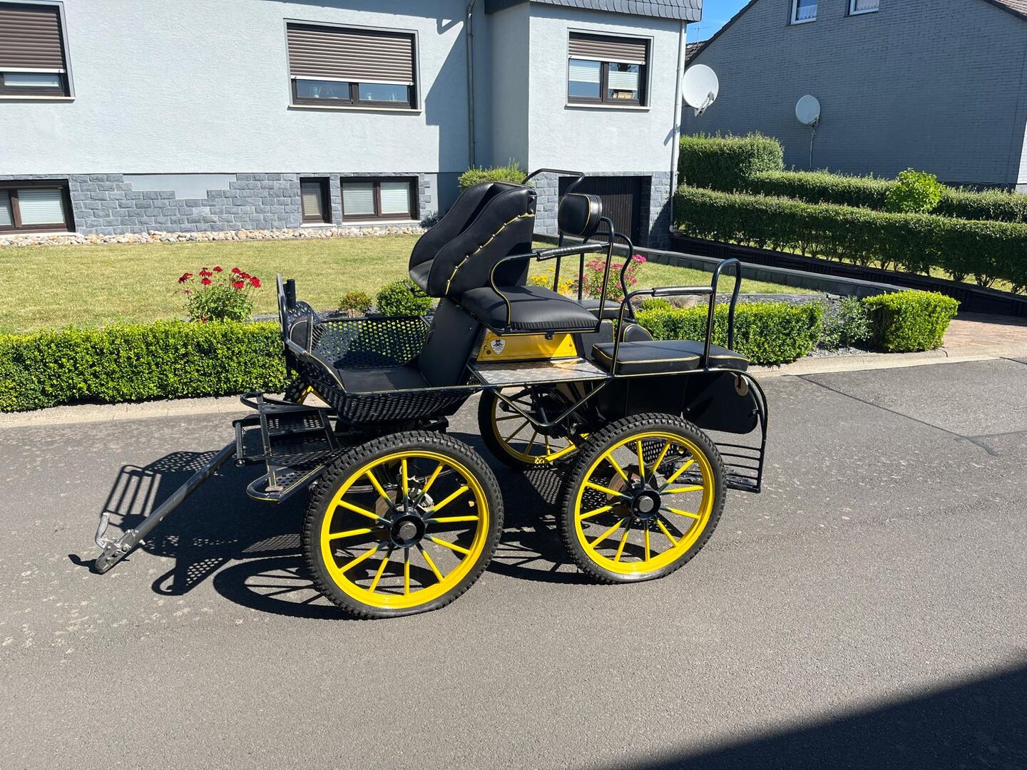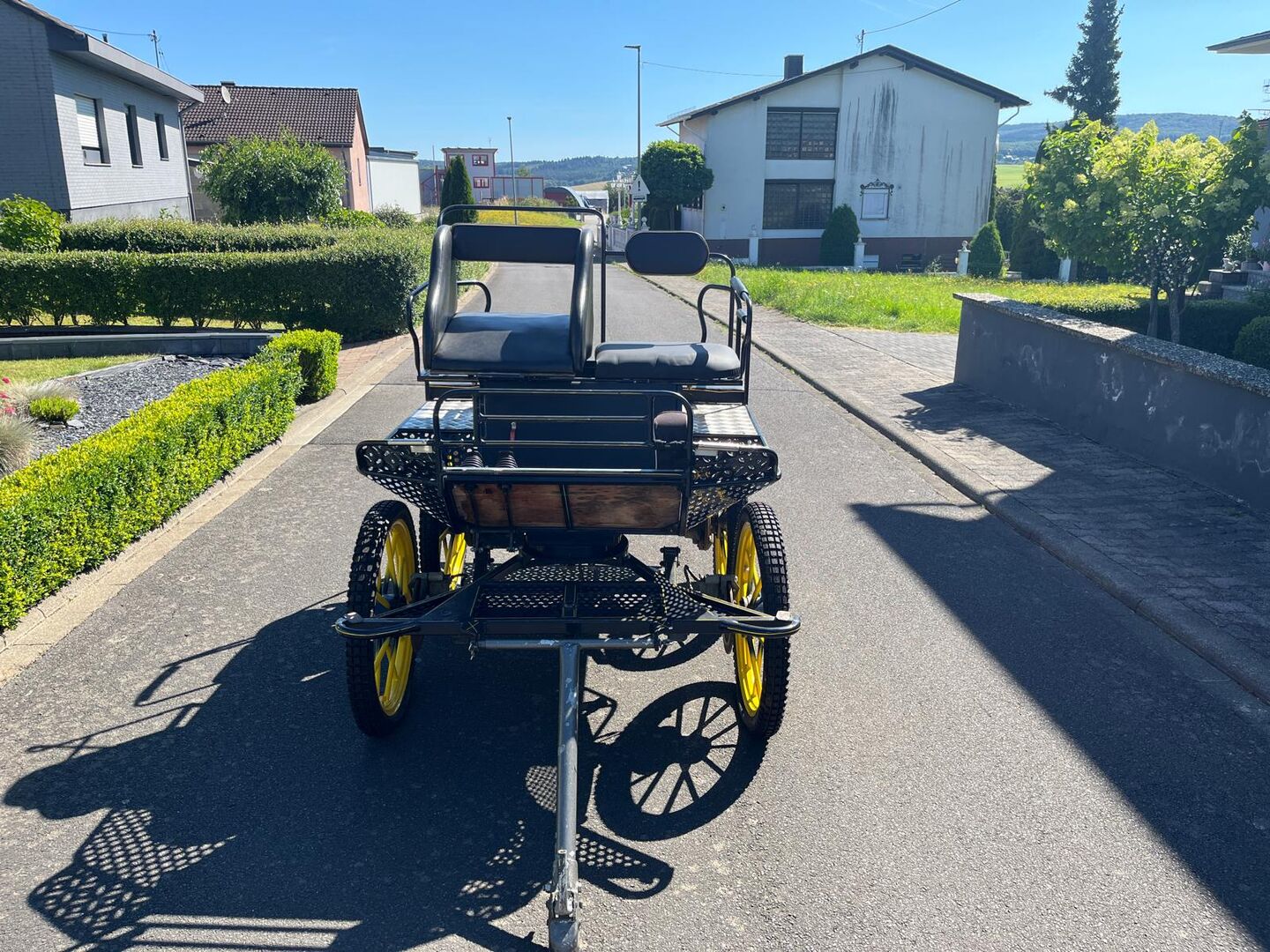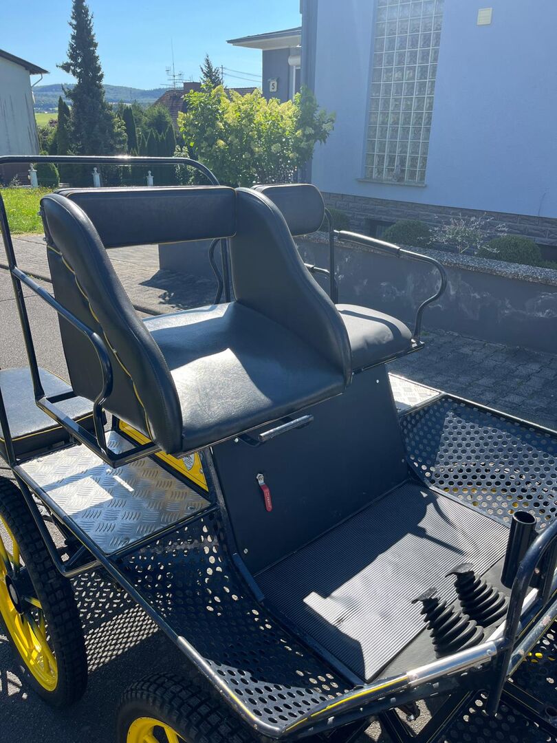 Samochód do maratonu - Oferuję powóz maratoński firmy Kutschen Eitel. Wózek jest w idealnym stanie i w pełni funkcjonalny. Opony są całkowicie nowe. Posiada również akcesoria do jazdy z jednym lub dwoma końmi. W razie potrzeby można również zakupić pojedynczą uprząż. Podana cena podlega swobodnej negocjacji, ale z przyjemnością otrzymam realistyczne ceny wywoławcze. Powóz jest dostępny do wglądu.