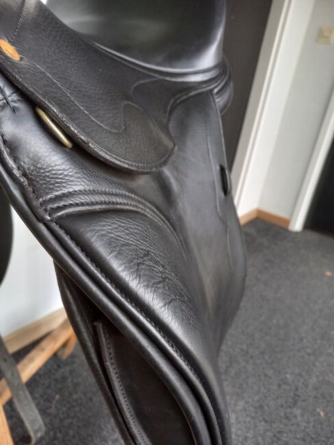 Schleese Rike 18 cali - Piękne siodło Schleese, typ Rike 18 cali. Kupiłam to siodło i nie używałam go długo, ponieważ mój koń zmarł. Siodło wisiało nieużywane przez jakiś czas. Siodło jest jak nowe