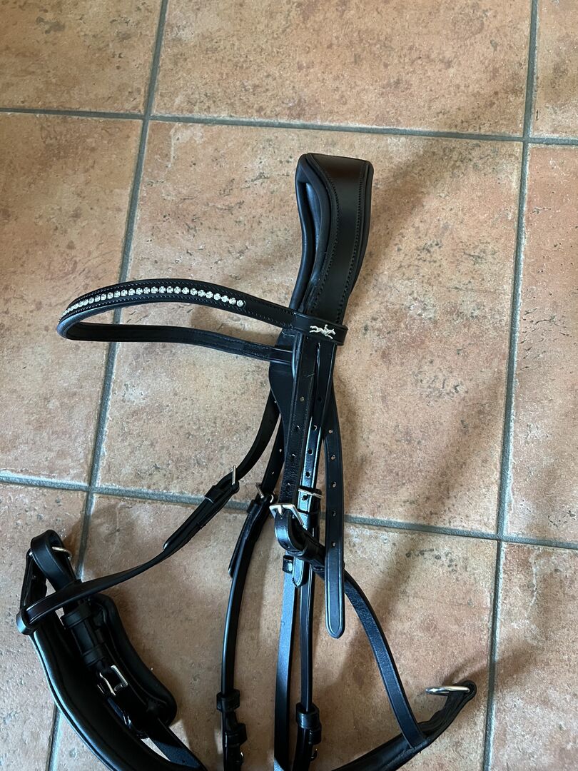 Schockemöhle Snaffle - Na sprzedaż nowa uzda Schockemöhle ze szwedzkim paskiem na nos w kolorze czarnym. Uzda była tylko raz przymierzona na konia. Niestety jest za mała na mojego konia.