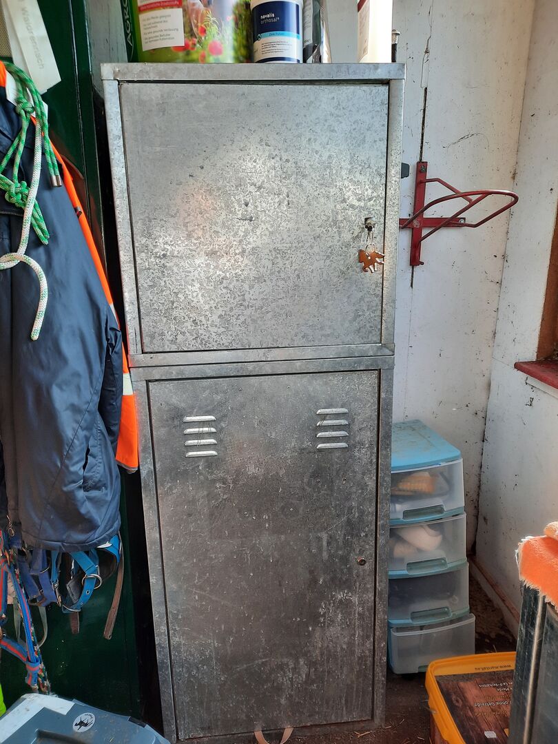 Schowek na siodełko - Sprzedam wieloletnią używaną szafkę pod siodło z górną szafką. Tylko jeden uchwyt na siodło ale na zewnątrz zamontowany jest uchwyt na plony.