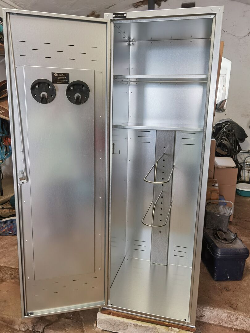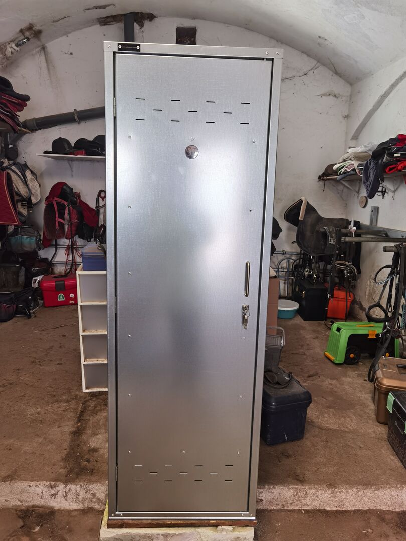 Schowek na siodełko SellaPort - SellaPort Klasyczna szafa siodłowa 1,80 x 0,60 x 0,60 m Miejsce na 2 siodełka Uchwyt do uzdy po 1 haku na prawej i lewej ścianie wewnętrznej