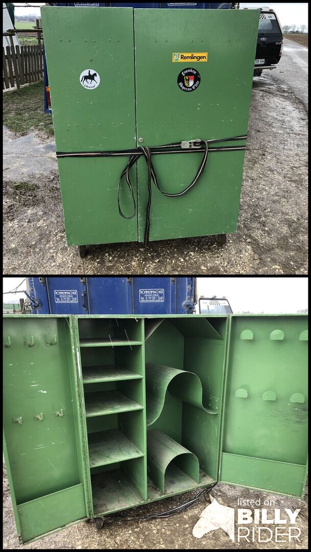 Schowek turniejowy / Schowek na siodło - Na sprzedaż starsza lekka toczona szafka turniejowa. Jak na razie w dobrym stanie, jedynie zamek wymaga naprawy. Wymiary na życzenie (muszę najpierw zmierzyć). Odbiór możliwy w 73760 Ostfildern lub w okolicach 97359 Schwarzach/Main.