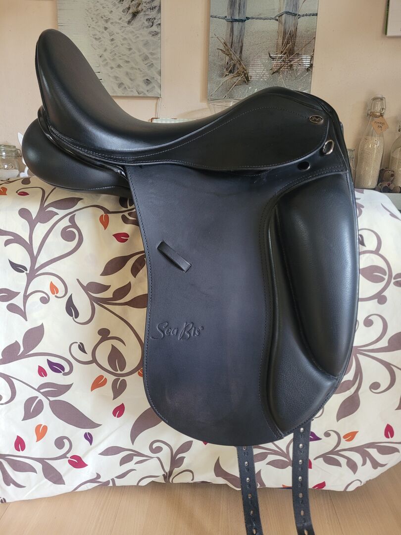 To siodło ujeżdżeniowe Seabis jest na sprzedaż. Siodło zostało zakupione w kwietniu 2024 roku. Niestety, pomimo nowego siodła, mój koń nadal miał problemy i objawy żołądkowe. W sierpniu zdecydowałam się na prześwietlenie grzbietu mojego konia. Okazało się, że w okolicy siodła znajdują się całujące się kolce. Weterynarz odradził mi jazdę na koniu. Teraz siodło jest w pokoju gościnnym od sierpnia 2024 roku. Jest na to za dobre. Miałem siodło na moim koniu nie więcej niż 30 razy. Ma niewielkie ślady użytkowania patrz zdjęcie 12,13,14. Siodło jest sprzedawane, ponieważ mój koń nie jest już jeżdżony. Nowa cena 2400€