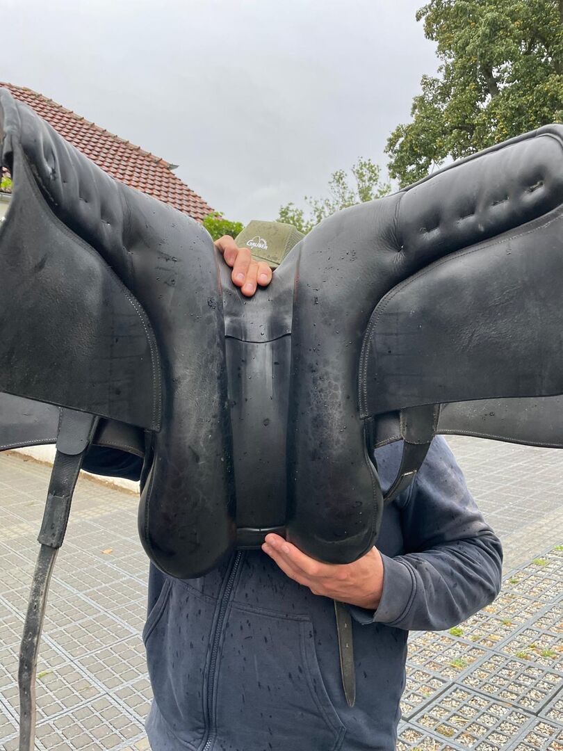Model: Carina Siedzisko: 17 cali Klapa siodła: normalna Szerokość wpustu: M - wymienna płyta wpustowa, którą można łatwo zmienić samodzielnie Wypełnienie poduszki: wełna silikonowa Kolor: czarny Dopasowanie: dla krótkich koni z dużą ilością łopatek i prostą linią grzbietu