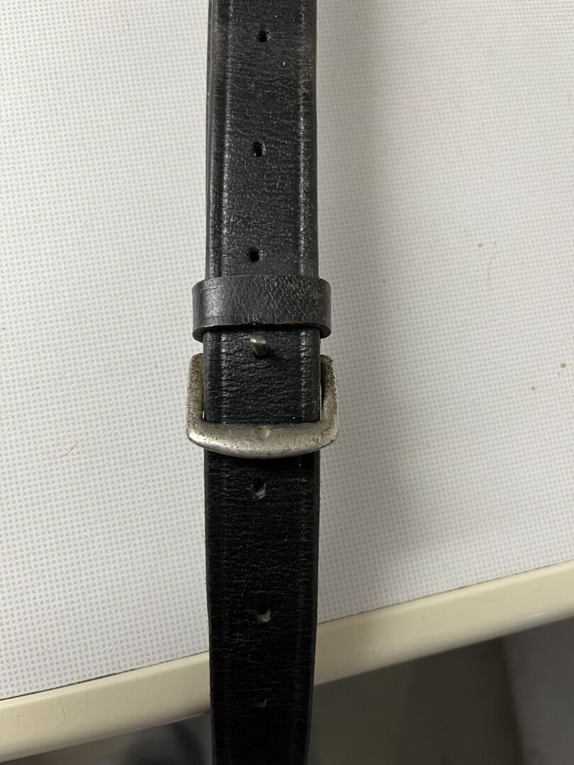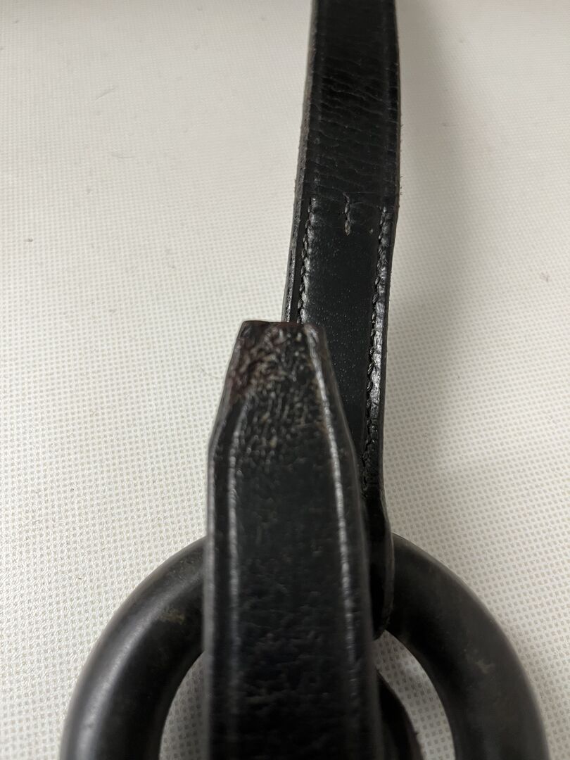 Sprzedaję pojedynczą skórzaną uzdę z gumowym pierścieniem, która była kiedyś używana jako shock rein przez poprzedniego właściciela. Używałam jej krótko jako zamiennik zepsutej uzdy do lonżowania, ale teraz od lat leży w piwnicy i może się wyprowadzić.