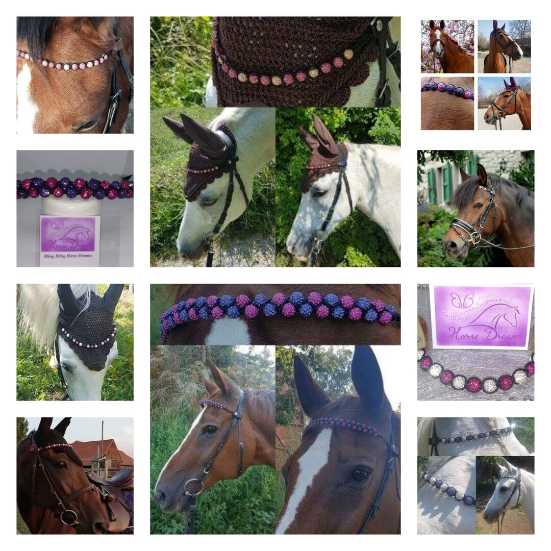 Shamballa - Browband - Shamballa zapewnia wyjątkowy wygląd. Koraliki Shamballa są wysadzane wieloma małymi kamieniami preciosa, które sprawiają, że mienią się i błyszczą w świetle, nie oślepiając widza. Atrakcja: oferujemy pasujące bransoletki i kolczyki. Opaska / pętla na ucho dla konia - bransoletka i kolczyki dla jeźdźca