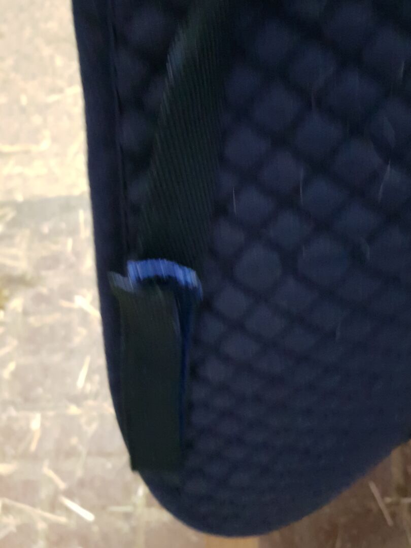 SHOWMASTER Podkładka pod siodło ujeżdżanie - Sprzedam moją podkładkę pod siodło ujeżdżeniowe Standard firmy SHOWMASTER. Kolor granatowy. Szew na lewej pętli lekko się poluzował. Podkładka pod siodło jest jeszcze w pełni użyteczna. Podkładka pod siodło nie była używana od listopada 2019 roku. Kupione jak widać, brak możliwości zwrotu, sprzedaż prywatna.