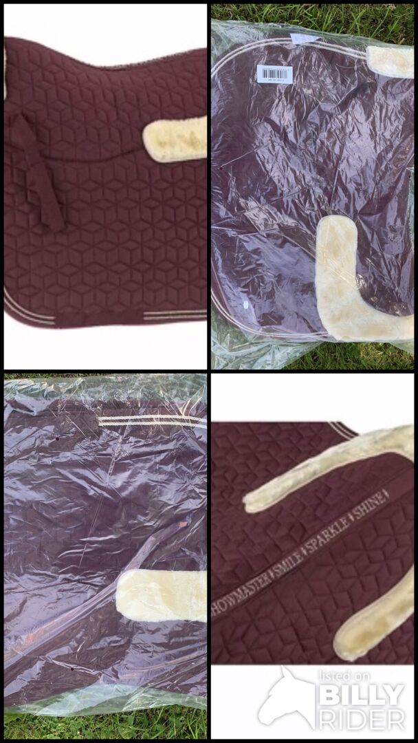 Showmaster Teddy Fleece Saddle Pad - Przytulna podkładka pod siodło z misternym, stabilnym wymiarowo pikowaniem i wyściełaniem z pluszowego polaru w całej strefie siodła, na kłębie jak i na brzegu siodła. Obrzeże z trzema dopasowanymi kolorystycznie, błyszczącymi sznurkami ozdobnymi. Z dyskretną metalową płytką z logo i haftem z błyszczącą nitką wzdłuż linii pleców. Wyposażony w pętle do siodła i pasa z praktycznymi KV.