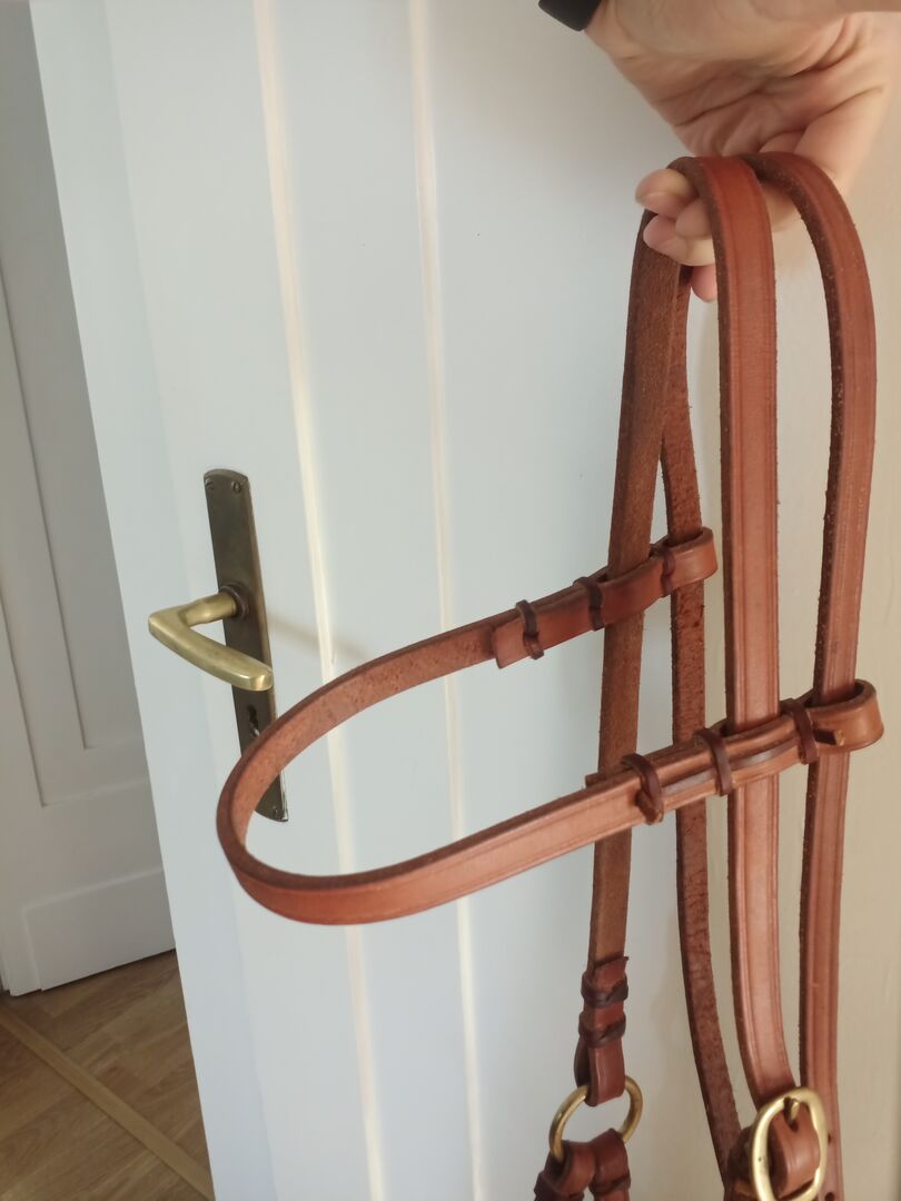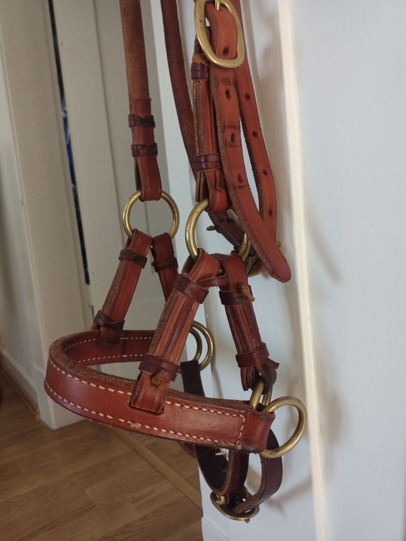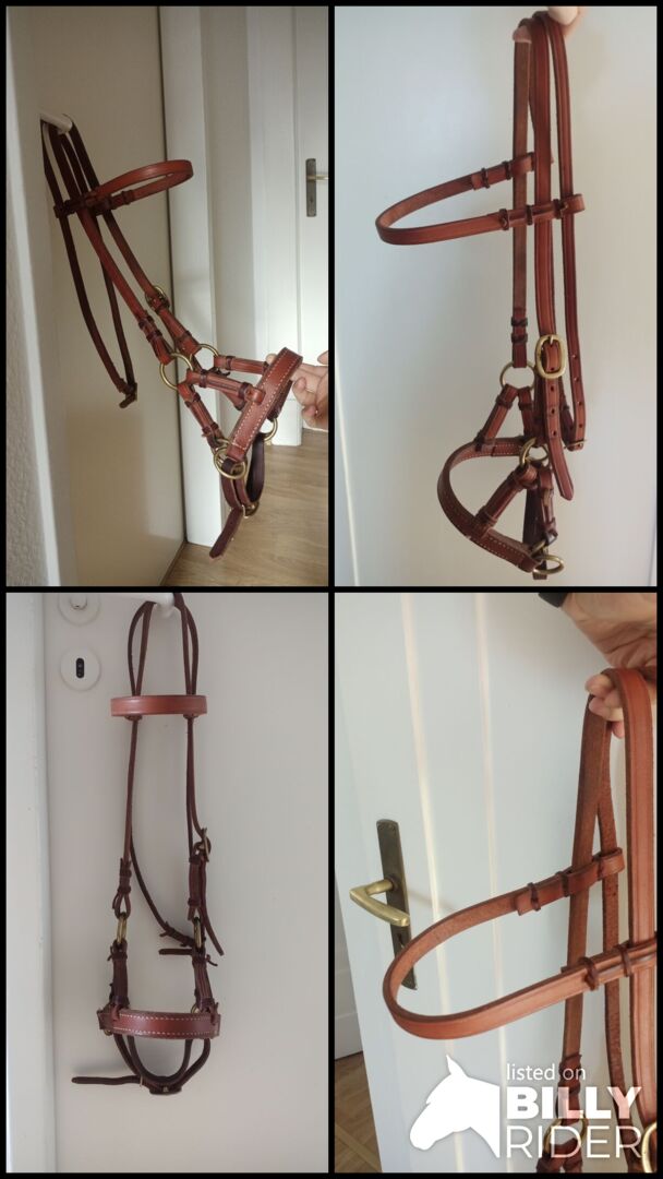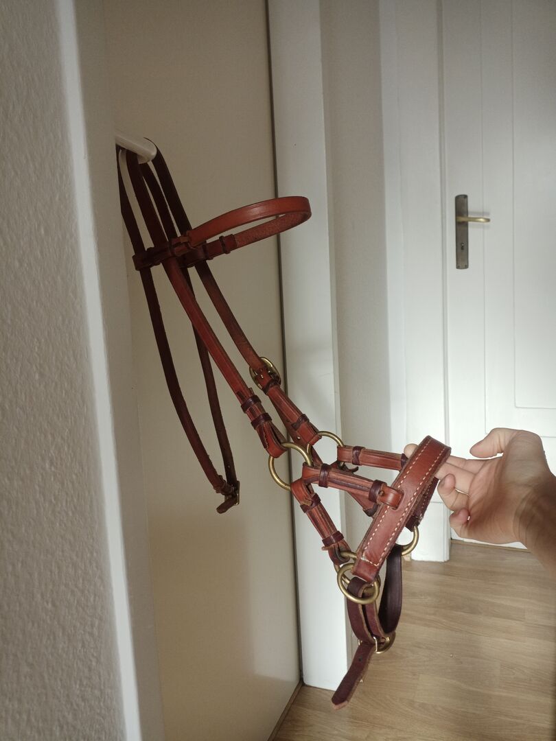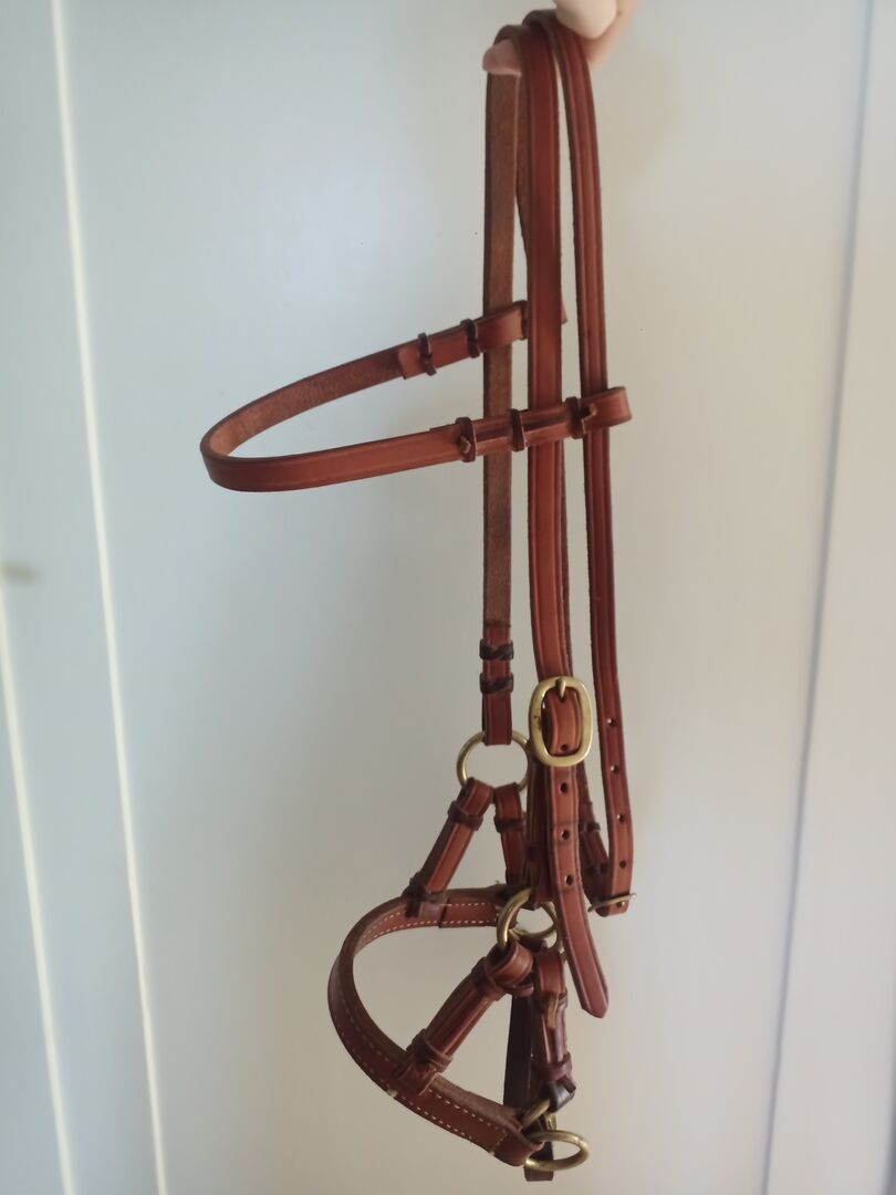 SidePull, koniak / mosiądz, VB / WB, bezzębny snaffle - Oferuję piękny SidePull w kolorze koniakowym z mosiężnymi okuciami.