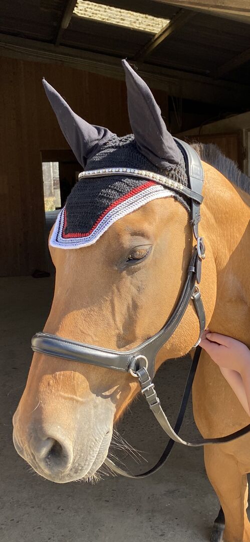 Opaska jest widoczna na zdjęciach, na których nie ma konia. Ten na zdjęciu na koniu niestety się rozpadł.