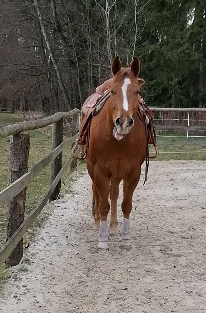 Silny, duży partner do rekreacji - Uroczy wałach rasy Quarter Horse szuka 5-gwiazdkowego domu z powodu przejścia na emeryturę i emigracji. PM Golden Sugar Cody to silny, zwarty wałach o wzroście 160 cm. Urodził się w 2012 roku. Jest dobrze wychowany. Cody zawsze chce się podobać. Dzięki swoim rozmiarom i mocnym kościom dobrze kryje również większych jeźdźców. Chodzi na bosaka. Ma solidne podstawowe szkolenie. Potrzebuje jednak jeźdźca z doświadczeniem. Cody jest zrelaksowany w terenie i świetnie nadaje się do jazdy tam i na arenie. Wałach ma pełne papiery i bardzo dobry wszechstronny rodowód. Jest super partnerem na długie godziny w siodle. Ze względu na diagnozę (spavin) jest sprzedawany jako towarzysz rekreacyjny. Lokalizacja: 31638 Stöckse