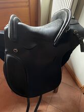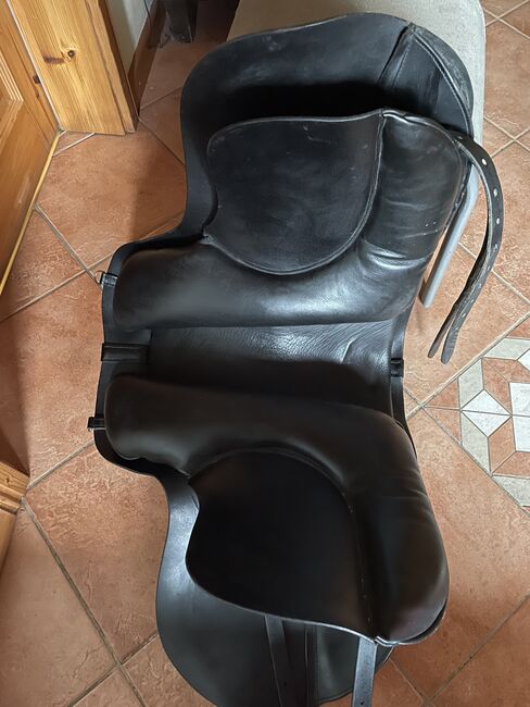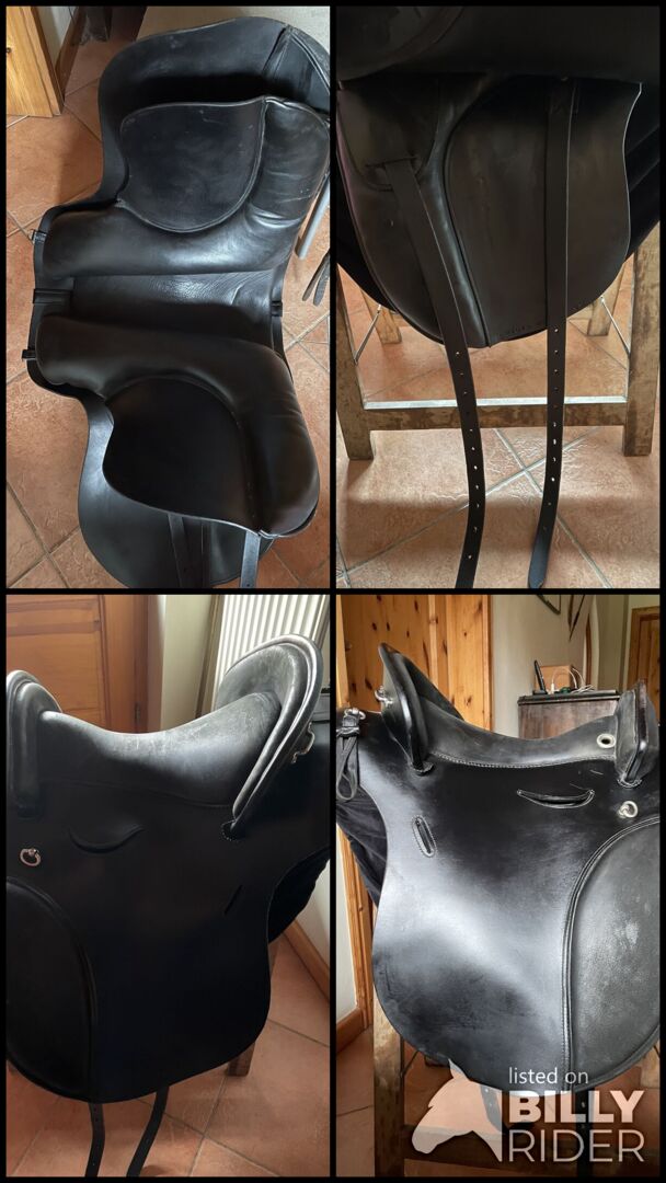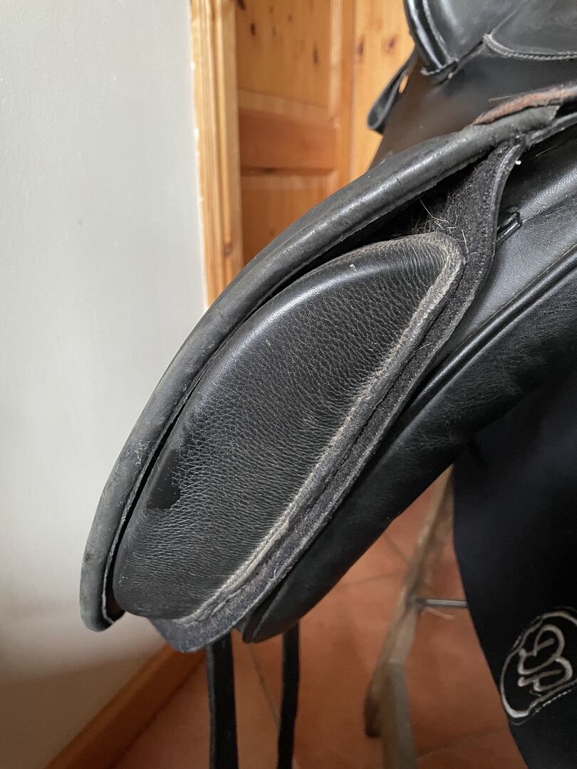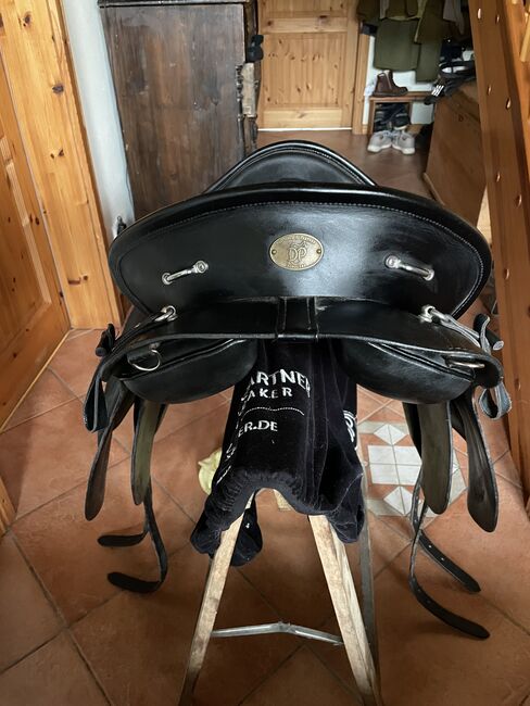 Siodełko barokowe Deuber - Drzewo jest regulowane za pomocą klucza imbusowego, rozmiar siedziska 2 Długie skórzane paski i rolki kolanowe można indywidualnie regulować za pomocą rzepów.
