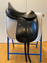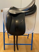 Siodełko boczne Röösli jak nowe - Siodło ujeżdżeniowe Classic Rigi, czarne, gładka skóra, siedzisko 17'', Monte Rosa, krótkie kieszenie, długie pręty, normalna komora, z szerokim przednim panelem klinowym, ogólnie cienkie. Siodło nr 20244 strzemiona skórzane ze srebrną podszewką Siodło z anatomicznym dopasowaniem jest idealnym towarzyszem dla kobiet. Wiele kobiet jest wrażliwych w okolicy łonowej. Siedzisko siodła "Monte Rosa", z wgłębieniem pośrodku siodła, zapewnia ulgę właśnie w tym obszarze. Dzięki miękko wyściełanemu siedzisku nawet długie przejażdżki znów stają się przyjemnością! To siodło Röösli z klapą mono umożliwia bycie bardzo blisko konia. Nowa cena: 6300 euro Siodło jest w idealnym stanie i wykazuje jedynie minimalne ślady użytkowania.