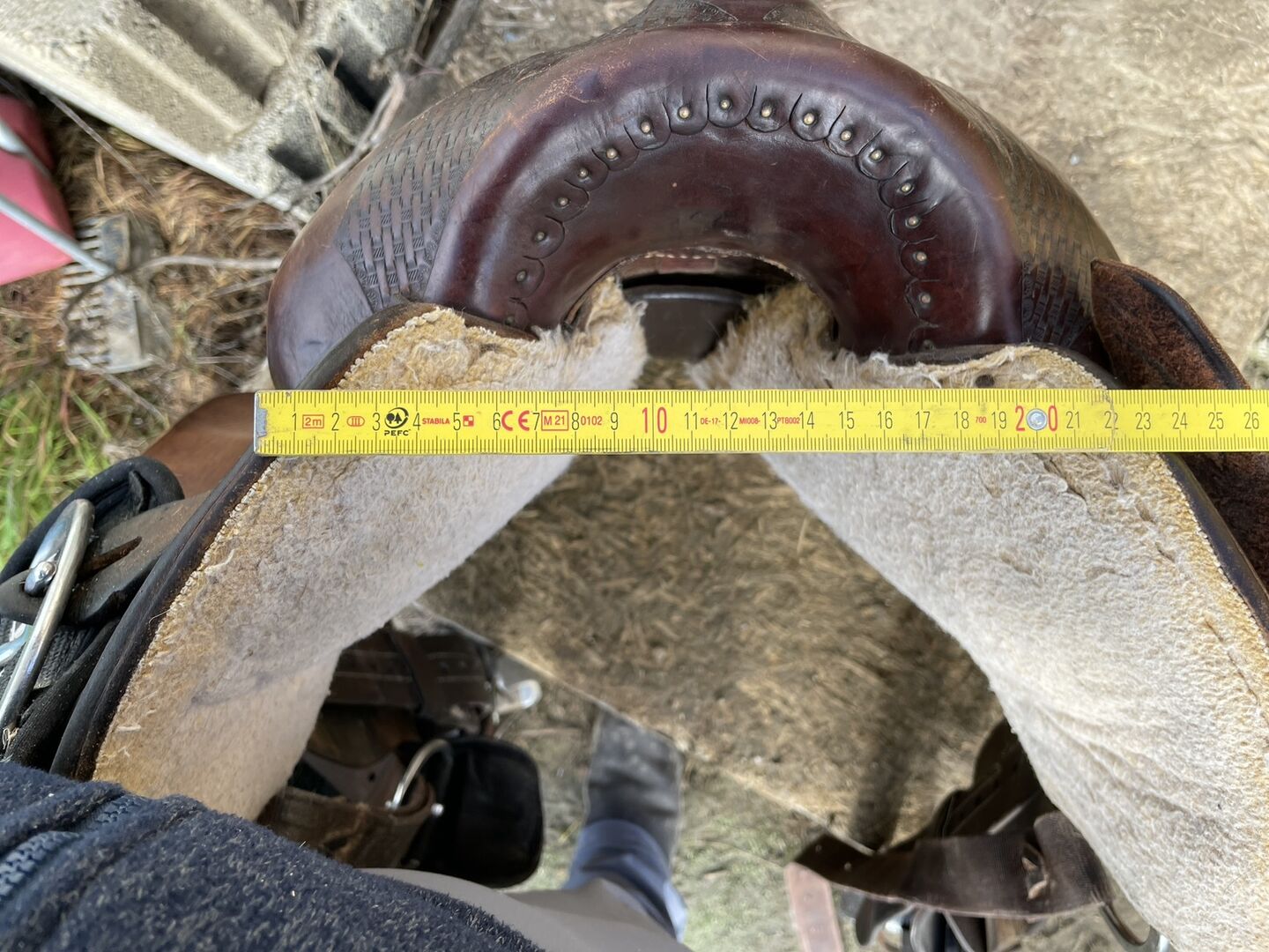 Siodełko Continental Western - Niestety uchwyt Tiestrap Holder jest zdarty, w przeciwnym razie w idealnym stanie. Wymiary można wziąć ze zdjęć.Używaliśmy go na klaczy cold blood mix.