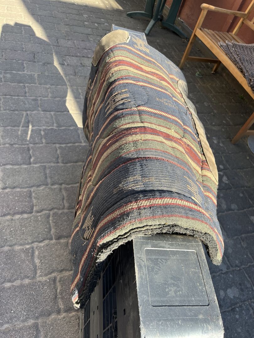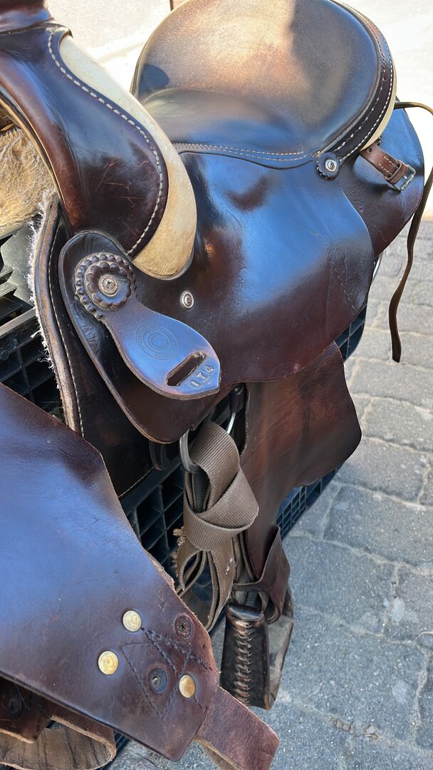 Siodełko Continental Western - Ciężkie siodło westernowe Continental z dodatkowymi strzemionami i podkładką jeździecką. Zamontowane na ćwierćkoniu, który niestety stał się zbyt stary, aby nosić ciężkie siodło.
